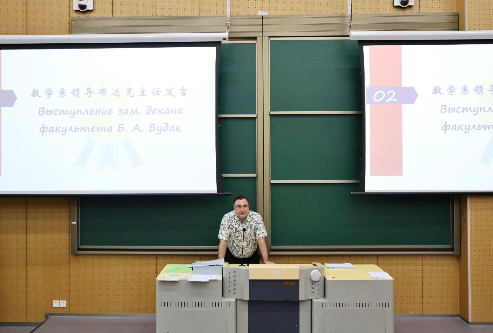 鲍·亚·布达克在致辞中提到,今年是计算数学与控制系第三年举办学科竞赛颁奖仪式,近年来,计算数学与控制系组织承办的竞赛不断增加,参赛及获奖人数逐年增长。在这些比赛中,他不仅看到了计算数学与控制系的学生,也看到了其他系学生的身影,为此他由衷地感到欣慰。每份荣誉都离不开同学们的奋斗拼搏和老师们的悉心教导,同时也证明了学校的教育是卓有成效的。