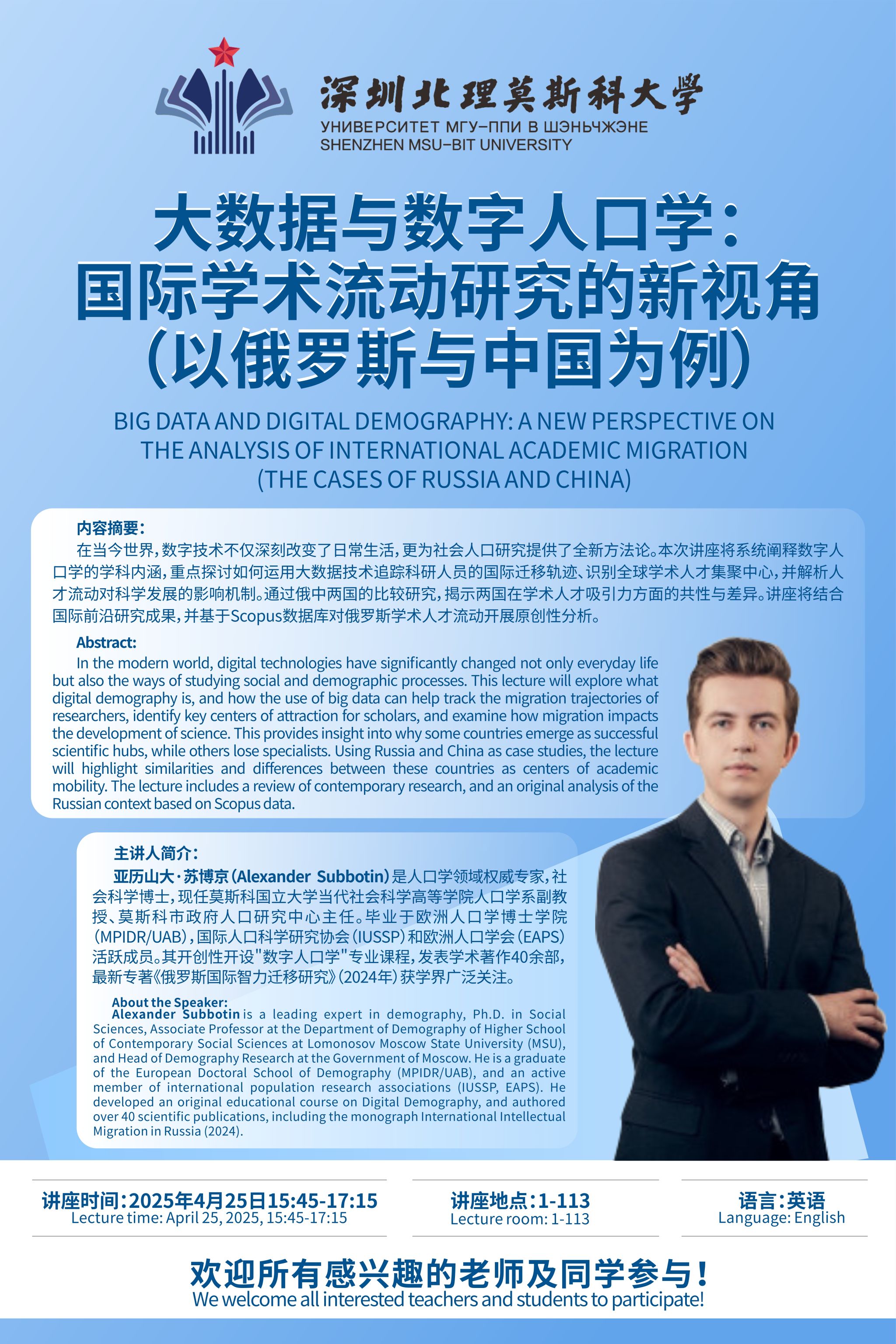 【讲座预告】大数据与数字人口学:国际学术流动研究的新视角(以俄罗斯与中国为例)