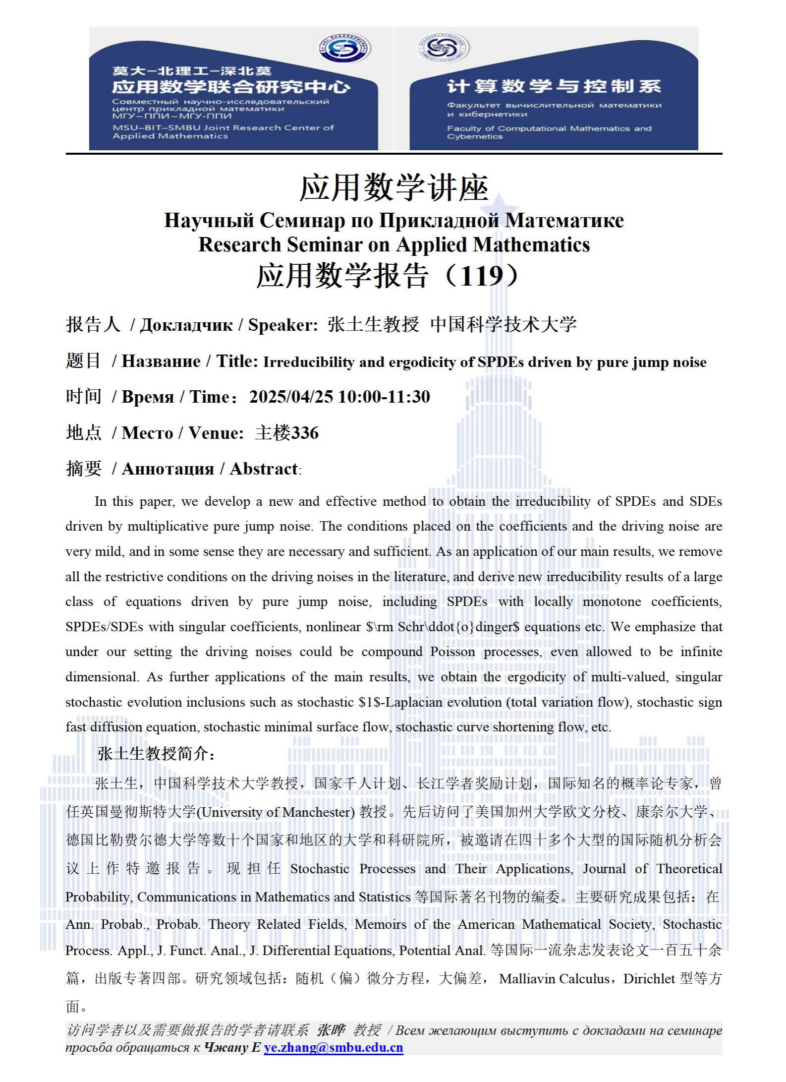报告人 / Докладчик / Speaker: 张土生教授 中国科学技术大学