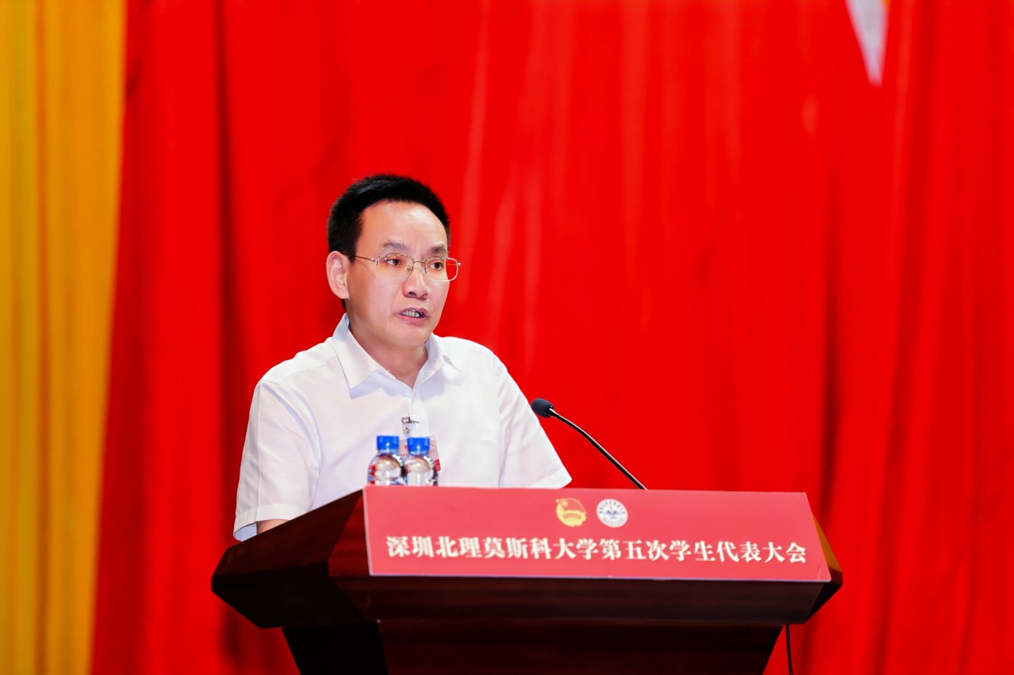 刘奔腾代表深圳市学生联合会向大会的召开表示热烈的祝贺。希望ac米兰官网中文网站学生会能深刻学习领会习近平总书记重要讲话和指示批示精神,深刻把握组织动员广大青年学生永远跟党走、奋进新征程的政治责任和要求,做好新形势下党的青年学生工作,持续推动学生会组织深化改革,明确职能定位、坚持从严治会,切实提高学生会组织同学满意度、大局贡献度、社会认可度。