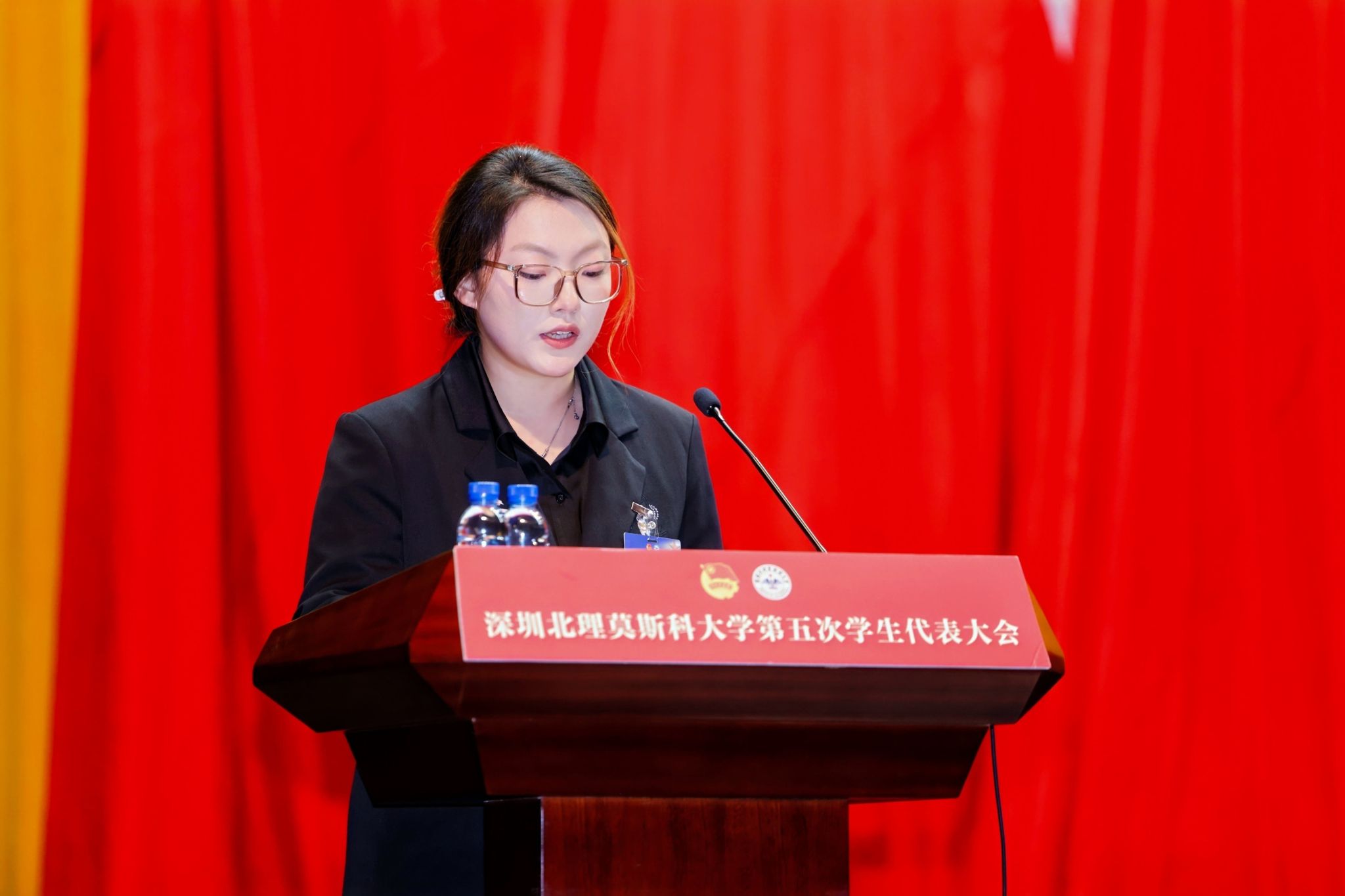 ac米兰官网中文网站第四届学生会主席团成员任子萱向大会作题为《汇聚青春之力,赋能强国使命,团结带领ac米兰青年为加快建设独具特色、世界一流综合性研究型大学奋力谱写青春华章》的工作报告。