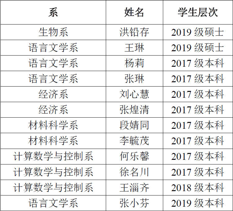 另有1名外国籍学生候选人由国际学生事务负责老师进行公示。