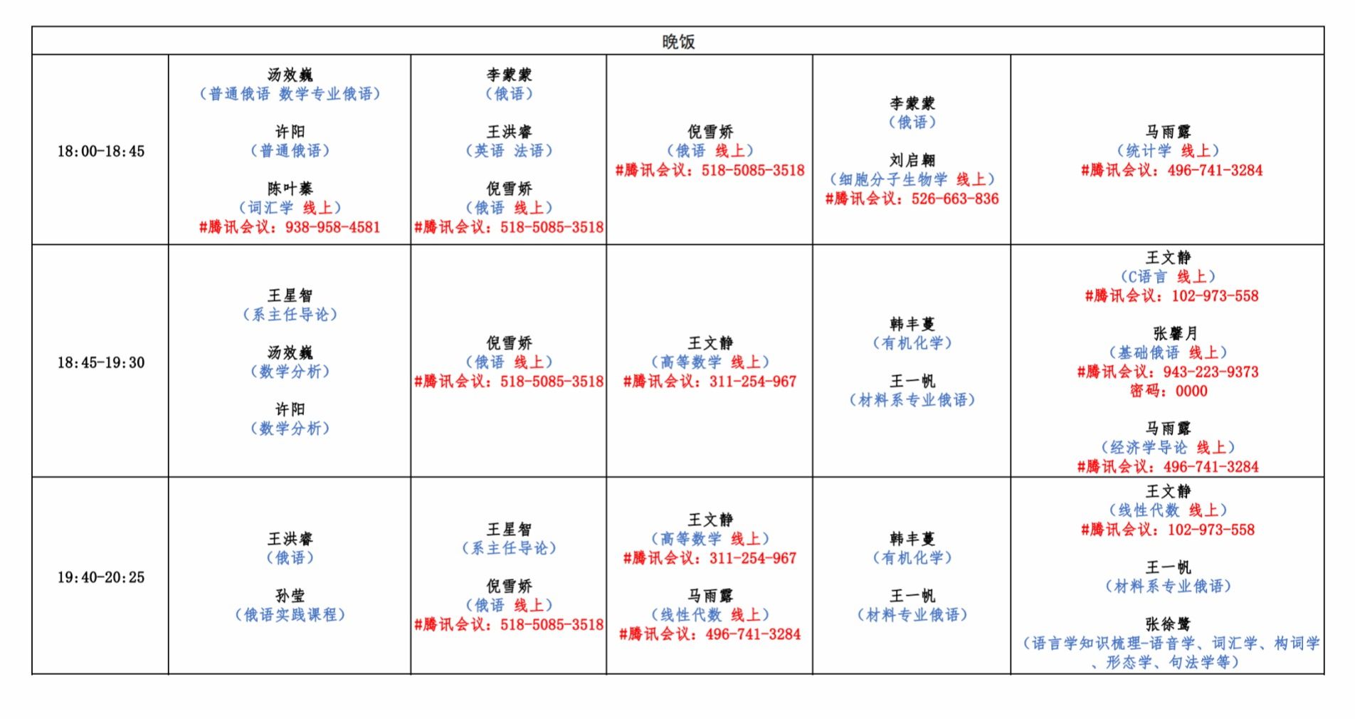 现将第13教学周(5月8日-12日)朋辈学业导师答疑值班表公布如下。各位同学可根据个人学习需求进行线上线下咨询。(注:线下答疑地点为学生活动中心智慧空间,线上平台为腾讯会议)