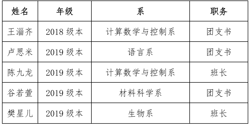广东省优秀学生骨干(按姓氏笔画为序):