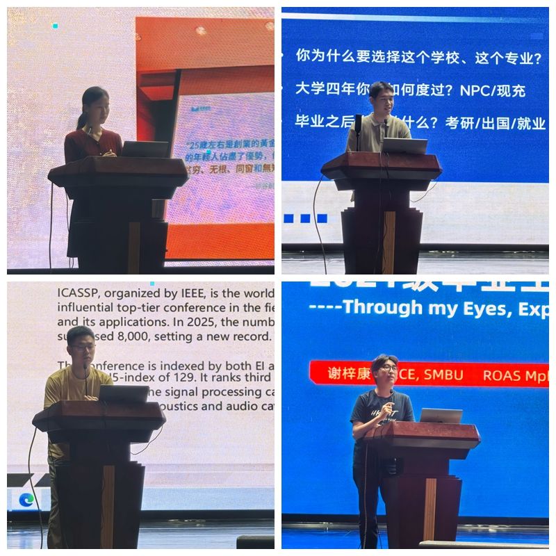 在优秀毕业生经验分享活动中,5名优秀毕业生分别讲述了自己在大学期间的学习经历和经验。他们在找寻人生发展方向、基础课学习的重要性、积极参加学科竞赛、参加科研实践、升学深造和就业实习等方面均分享了宝贵的经验。
