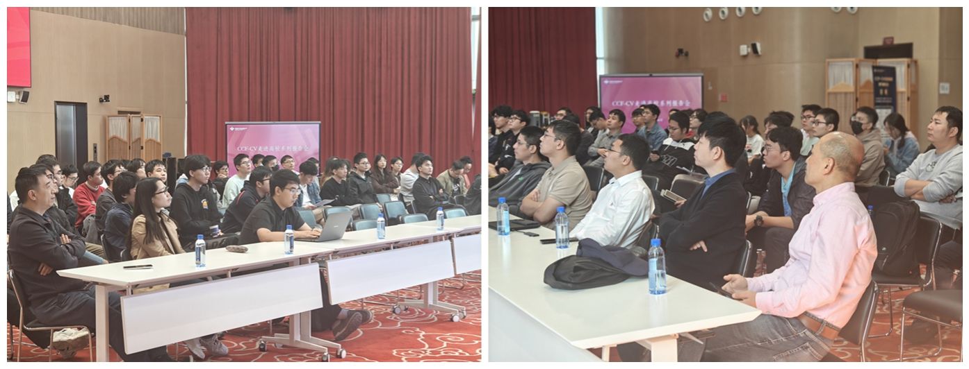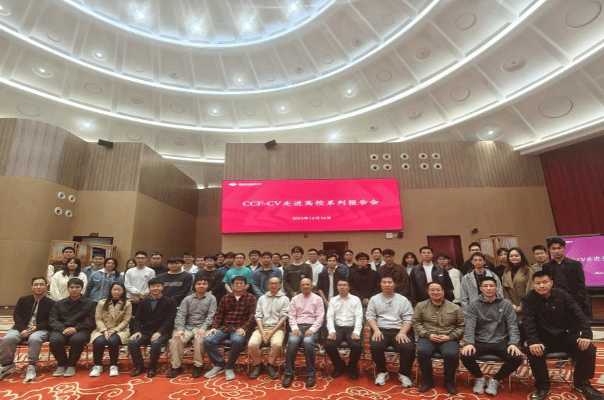 本期CCF-CV走进高校系列报告会,从噪声关联学习、深度概率模型到高效目标跟踪与分割、低质图像恢复,报告覆盖了智能感知与计算的多个方面,前沿理论与实践应用紧密结合。4位讲者与师生互动,共同探讨、交流,并对师生提出的问题做出详尽的回答,使大家获得了许多有价值的学术见解,会议氛围热烈。此次报告会极大地激发了师生们的科研热情,为师生们提供了一次难得的学习机会。最后,报告会在热烈的掌声中圆满结束。