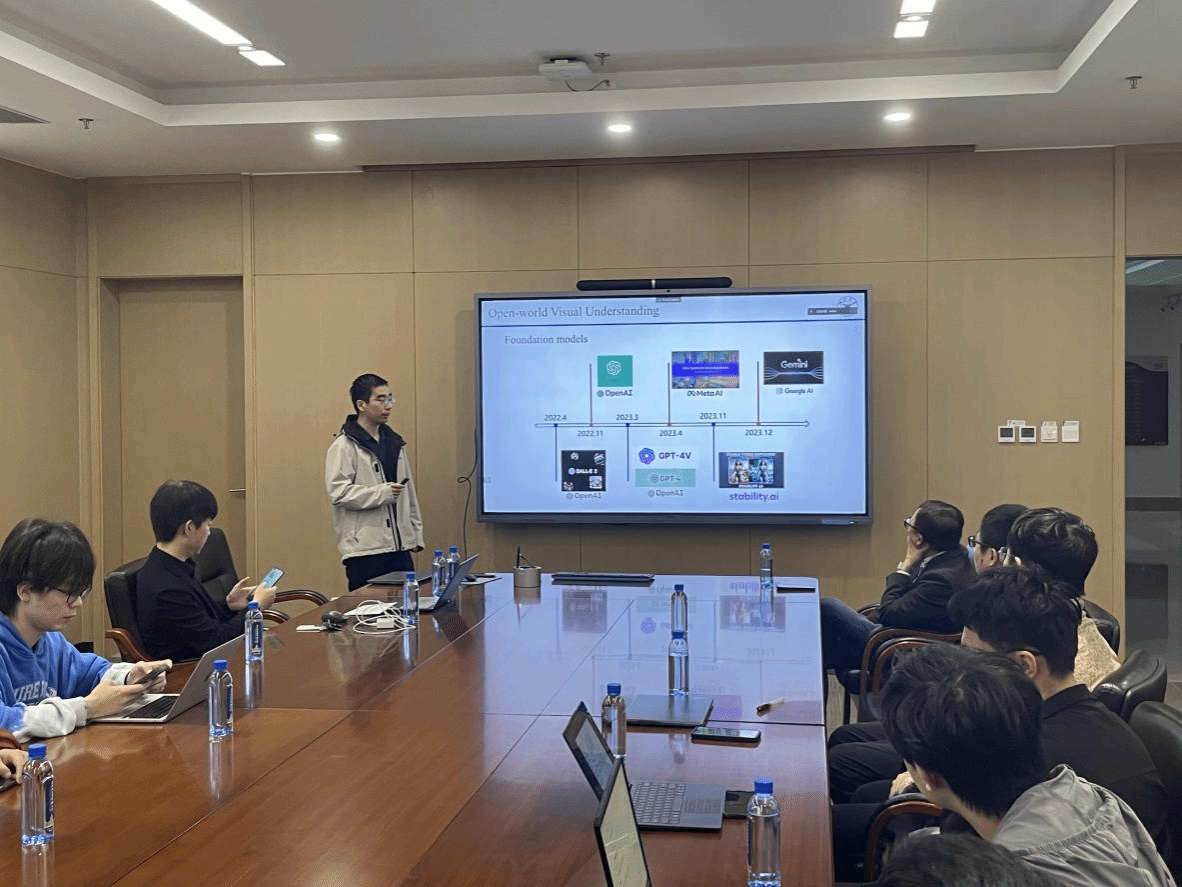 景宸琛博士从当前国内外学界就人工智能领域的通用基础模型这一前沿热点问题开始,介绍了通用基础模型的百花齐放,以及为实现开放世界下的视觉理解带来的新机遇与挑战。视觉基础模型的强大的表征能力为实现通用感知奠定了基础,多模态基础模型则使得开集理解成为了可能。报告中,景博士也展示了他在该领域的许多工作进展,分享了他对开放世界下视觉理解的一些深刻的思考,得到了与会师生的广泛共鸣和讨论,受益匪浅。景宸琛博士分别于1997年和2022 年获得北京理工大学计算机科学与技术学士学位和博士学位,获北京理工大学优秀博士学位论文奖。目前在浙江大学 CAD & CG 全国重点实验室从事博士后研究工作,主要研究方向包括计算机视觉、多模态理解与推理以及开放世界的理解,在IEEE-TMM、PR、CVPR、ICCV、AAAI、MM等人工智能及计算机视觉领域国内外高水平会议期刊上发表论文十余篇。