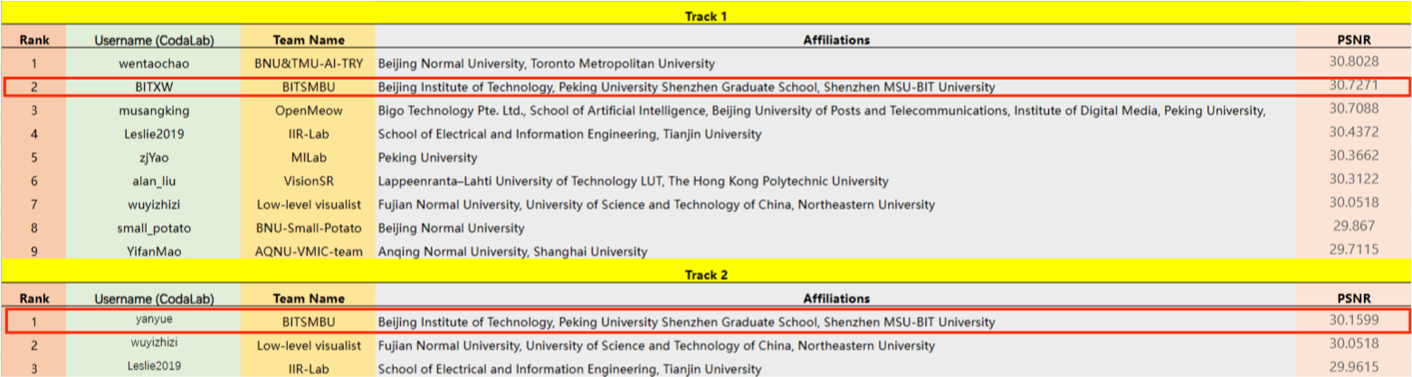 据悉,NTIRE(New Trends in Image Restoration and Enhancement)由苏黎世联邦理工学院计算机视觉实验室与计算机视觉和模式识别领域全球顶级会议CVPR共同举办,每年举办一次,今年是第9届比赛,该赛事是全球计算机图像恢复领域最具权威性和代表性的赛事。该项赛事的赛道1旨在鼓励参塞者探索LFSR的精度上限,排名仅由测试集上的平均PSNR值决定。赛道2旨在效率约束下的保真度测试模型大小被重新限制为1MB,FLOP被限制为20G。排名由测试集上的平均 PSNR值决定。