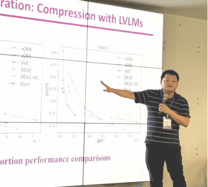 王诗淇博士的特邀报告题目是“Video Coding and Quality Assessment Based on Generative Models”,分享了如何实现更高效的视频基于大语言强大生成能力的编码与质量评估视觉模型,并介绍了他们在低复杂度生成人脸方面的标准化工作视频编码,进一步讨论压缩人类、自然和人工智能生成的可能性视频内容。