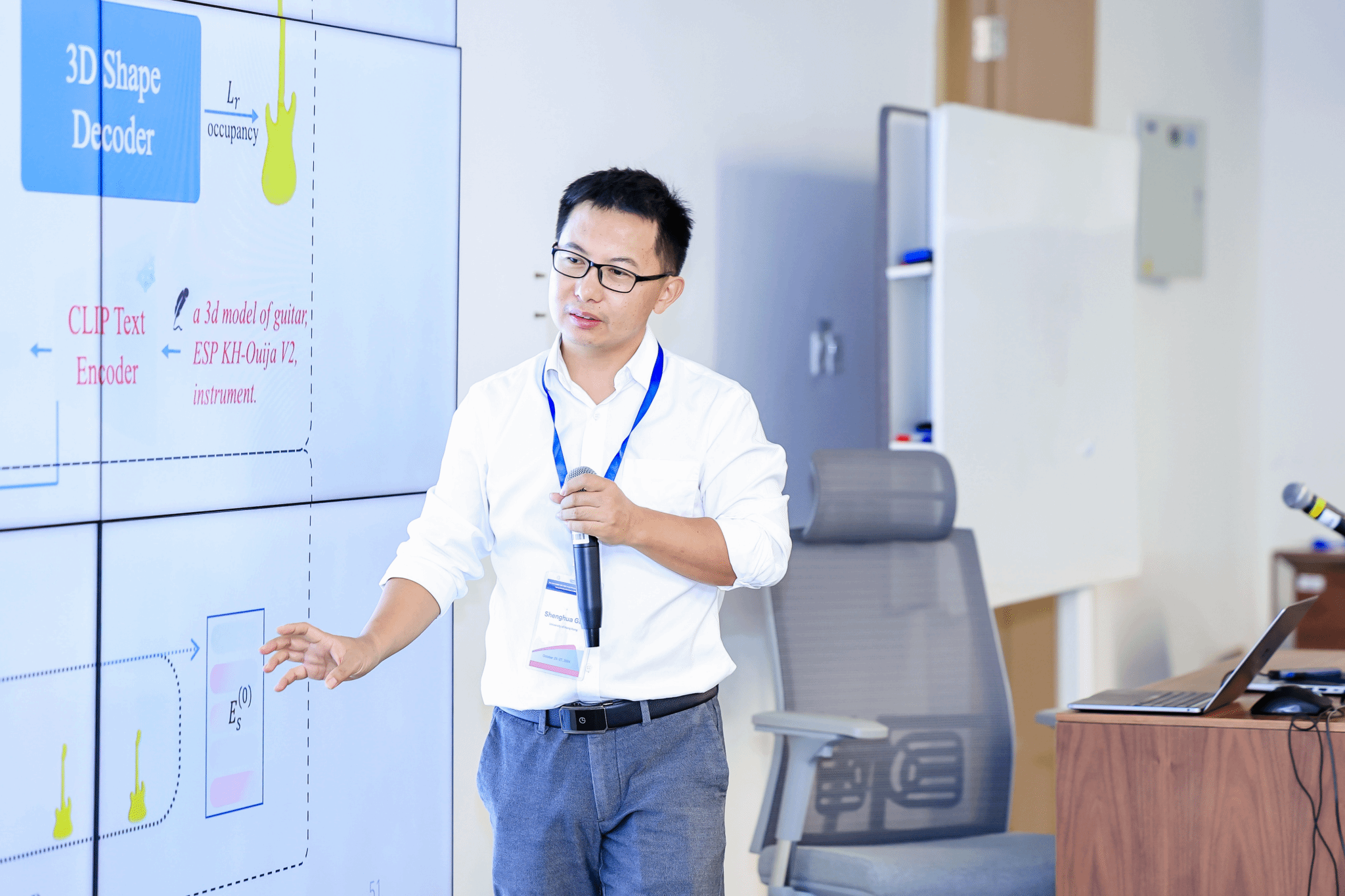 高盛华博士的特邀报告题目是“2D Gaussian Splatting for Geometrically Accurate 3D Reconstruction and its Applications”,给听众展示了一种新颖的2D Gaussian Splatting方法,用于从多视角图像中几何精确地重建辐射场,该技术在4D重建、人体重建、场景编辑等多个领域展现出广泛的应用潜力。