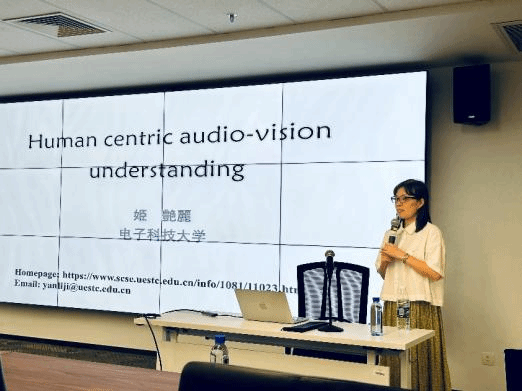 姬艳丽教授做了题为“围绕人的音视多模态理解”的精彩报告。针对围绕人所展开的音视多模态理解,通过对音视频中的不同视角、不同模态信息进行挖掘和建模,探讨了有监督、自监督、弱监督等学习模型实现不变视角行为识别、多模态情感理解、视线监督下的注意力估计等围绕人的理解任务,并探讨了有效人机交互途径。