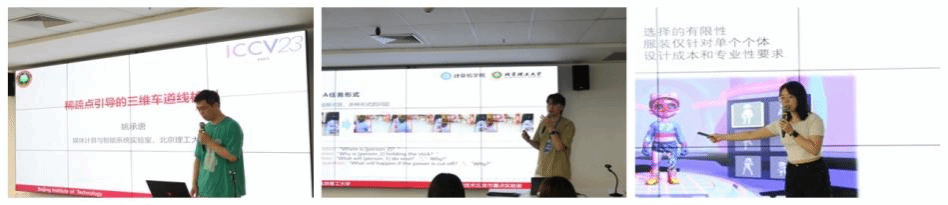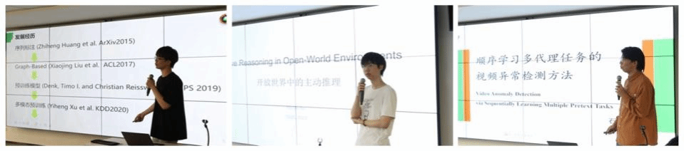 在上午的论坛中,姚承唐同学在报告中介绍了一种稀疏点引导的三维车道线检测方法;臧传祺同学在报告中介绍了一种多模态问答数据中的因果关联捕捉方法;李安琪同学在报告中介绍了一种基于数字服装的版片表达、重建及重定向方法,实现了数字服装的个性化定制。翟明亮同学在报告中介绍了Fast-StrucTexT,这是一个基于沙漏Transformer架构的高效多模态框架,可用于文档理解,该方法实现在性能不下降的情况下显著提升了推理速度。杨硕同学在报告中介绍了一种通过引入了概率分布函数来建模动作前景帧和边界帧的概率,生成合理的伪标签,帮助模型学习,极大的降低人工标注全部数据帧的难度。徐满杰同学在报告中讨论我们如何将主动推理的思想应用到开放世界的推理任务中。石辰睿同学在报告中介绍了一种基于代理任务难易程度的顺序学习优化方法。