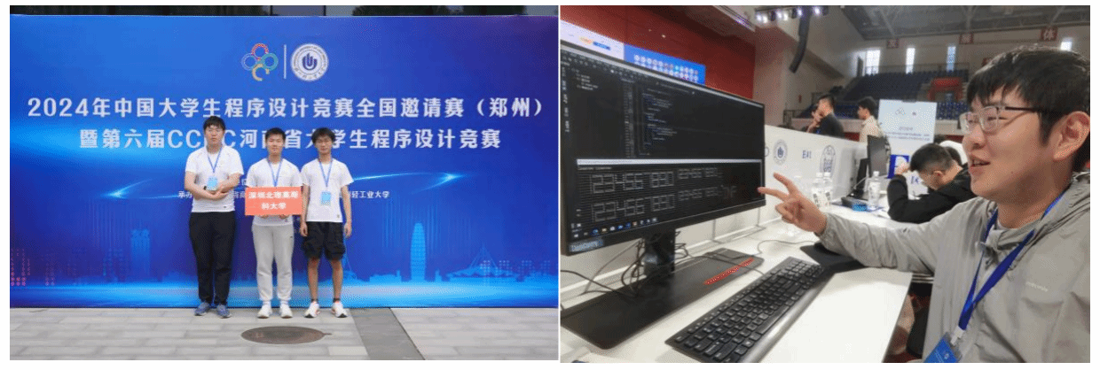 在CCPC郑州邀请赛中,由2023级数学与应用数学专业王司晨、2023级化学专业郭森宇、2021级电子与计算机工程专业刘洋杰组成的队伍获得铜奖。