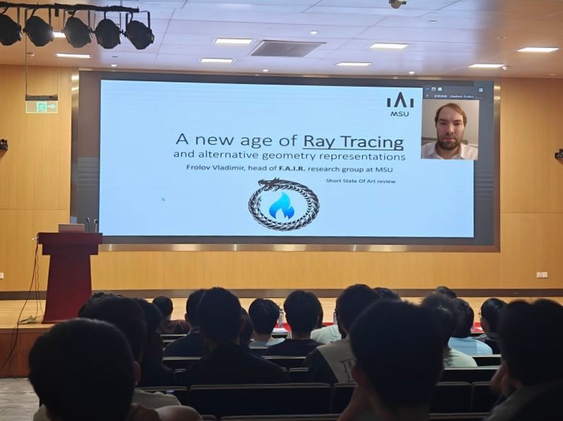 Vladimir Frolov博士的特邀报告题目是“Recent Advances in Ray Tracing”,分享了在光线追踪领域的前沿进展,并介绍了研究团队如何通过优化GPU的计算效率,提升光线追踪的呈现效果。该技术广泛用于目前主流的游戏引擎之中。
