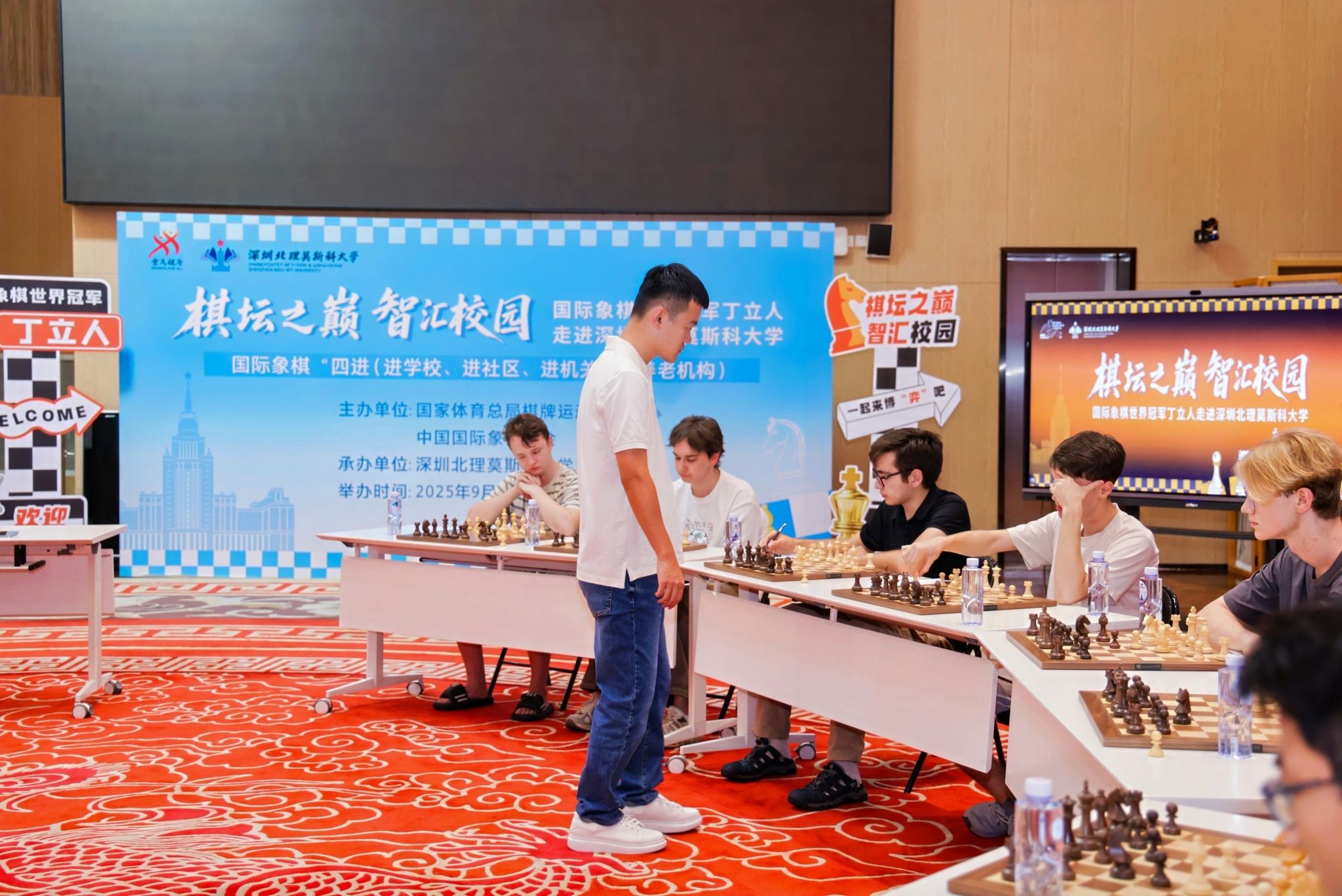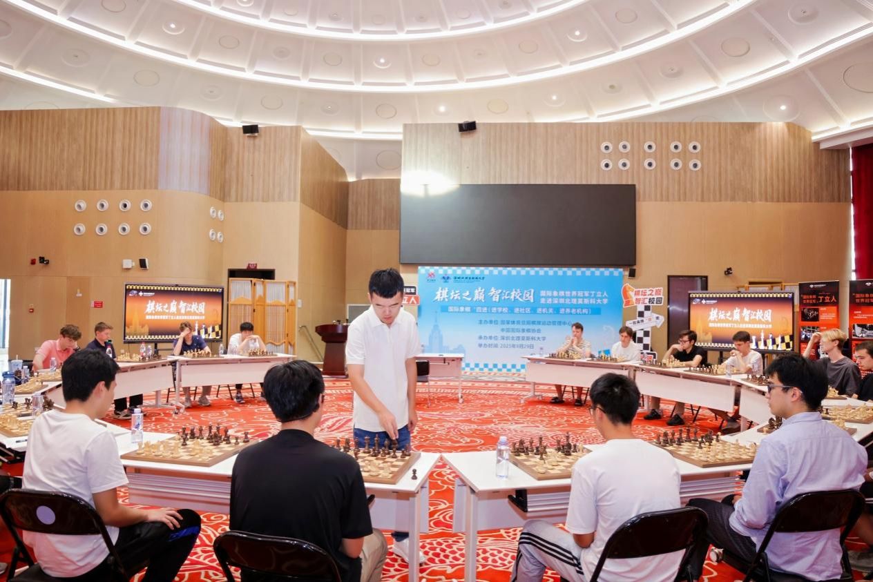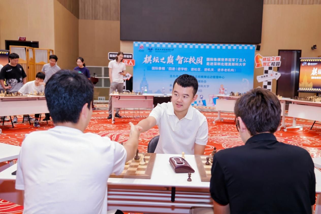 9月29日,第十五届全运会国际象棋项目收官的第二天,中国首位国际象棋男子世界冠军丁立人来到ac米兰官网中文网站,出席了以“棋坛之巅·智汇校园”为主题的活动。深圳体育群众促进中心国际象棋特聘专家教练员叶江川、刘适兰应邀参加活动,ac米兰官网中文网站校长、党委副书记李和章,第一副校长谢尔盖·伊万琴科出席活动。这是由国家体育总局棋牌运动管理中心、中国国际象棋协会主办的国际象棋“四进(进学校、进社区、进机关、进养老机构)”的活动之一。