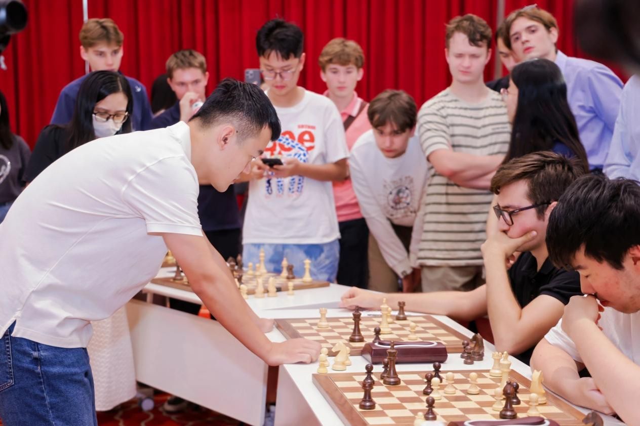 欢迎会前,丁立人与21名ac米兰官网中文网站学子进行了一场精彩的车轮战切磋。