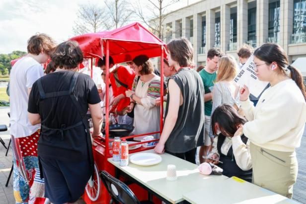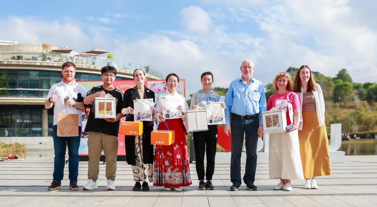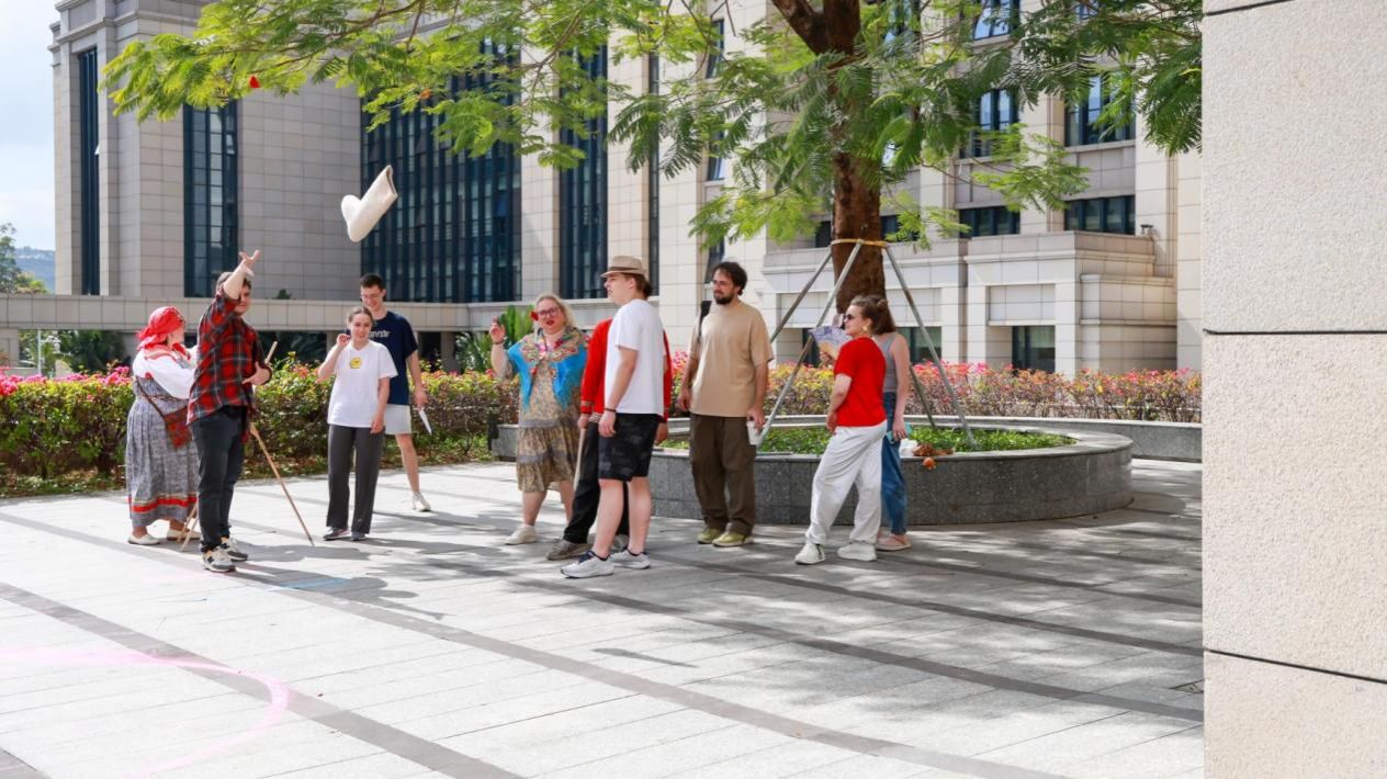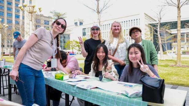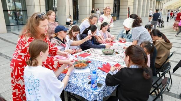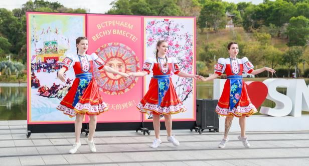 活动当天,湖畔广场热闹非凡。焦黄的薄煎饼、俄式酸奶、蜂蜜、茗茶、春饼等中俄特色美食摊位人流攒动,营造出浓郁的节日氛围。互动体验区同样吸引了众多师生驻足停留,师生们不仅可以学习制作传统的俄罗斯碎布娃娃、绘制俄罗斯套娃、体验俄罗斯书法以及尝试用勺子演奏,还能动手制作中国非遗手作漆扇、菱形风筝等,丰富多彩的活动充分展示了中俄文化交融碰撞的独特魅力。此外,现场还设置了拍照打卡区,师生们与身着俄罗斯特色民族服饰的工作人员合影留念,留下难忘的瞬间。