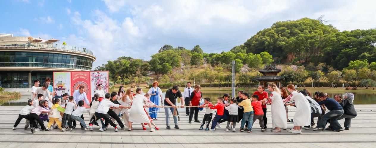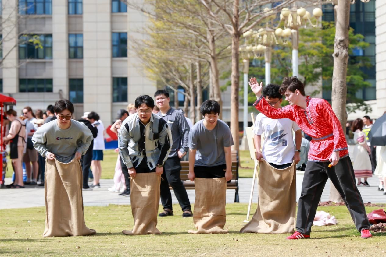 此外,活动现场还组织了丰富多彩的俄罗斯民俗游戏,如俄罗斯毡靴游戏、拔河和袋鼠跳等。这些游戏不仅考验了师生们的团队协作能力,更让大家在欢声笑语中增进了彼此的友谊,进一步加深了对俄罗斯文化的理解和认同。