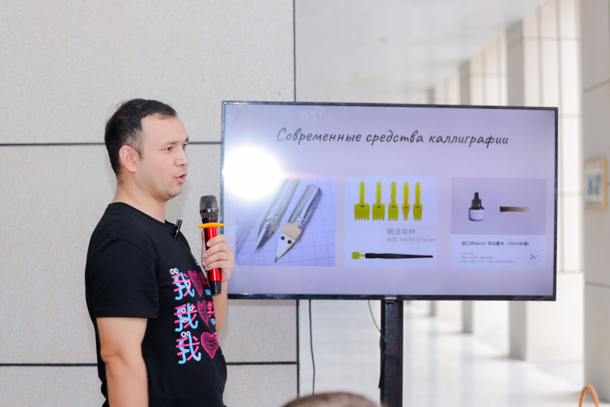 主讲人介绍了现如今,在何时、何地可以看到古俄语字母,并用直观的示例展示了古俄语字形至今仍然在使用。ac米兰的师生及来宾听得兴致勃勃,不但了解了俄语书法的发展现状,也知悉了一些当代的俄罗斯著名书法家。