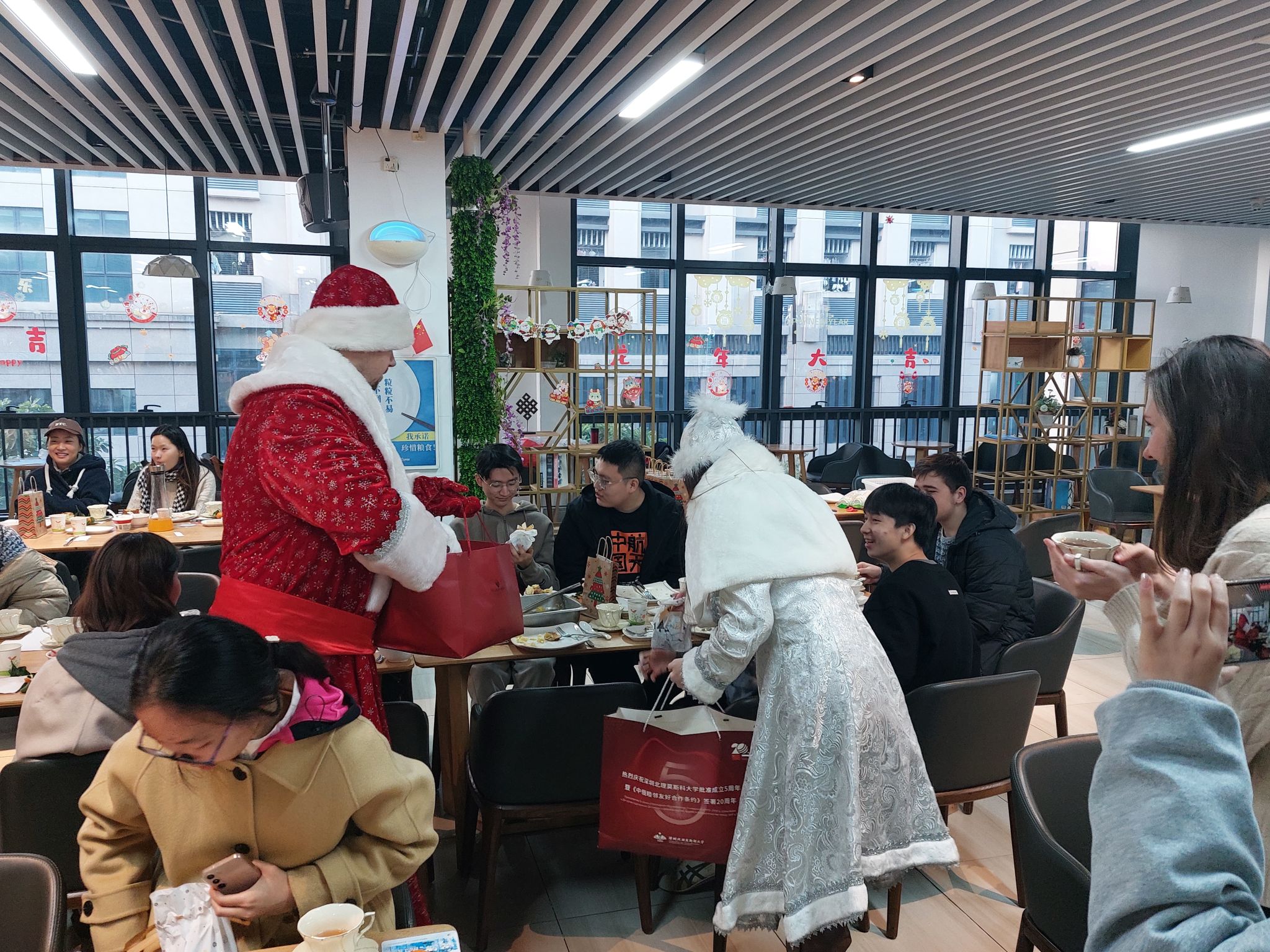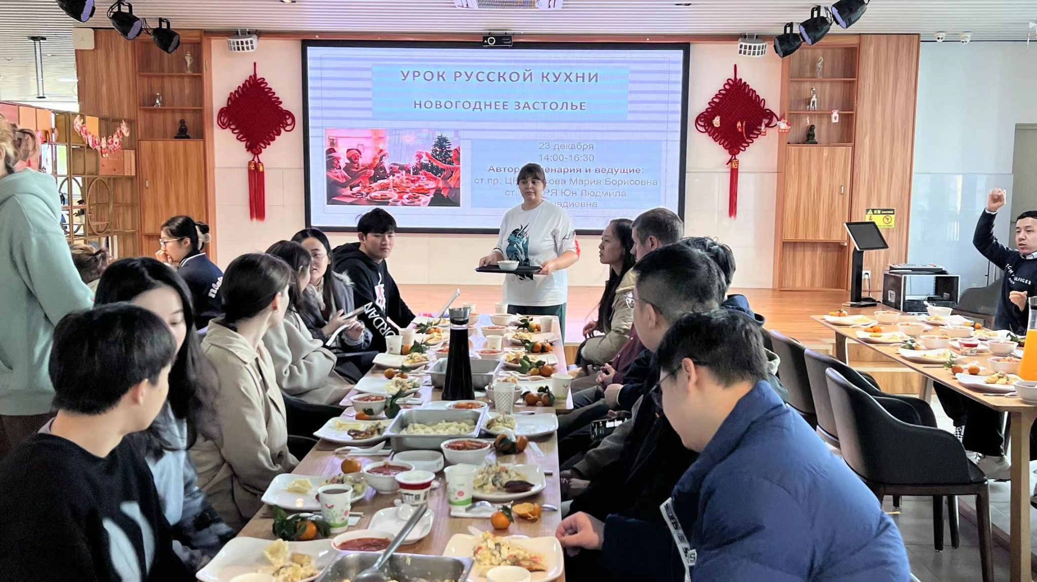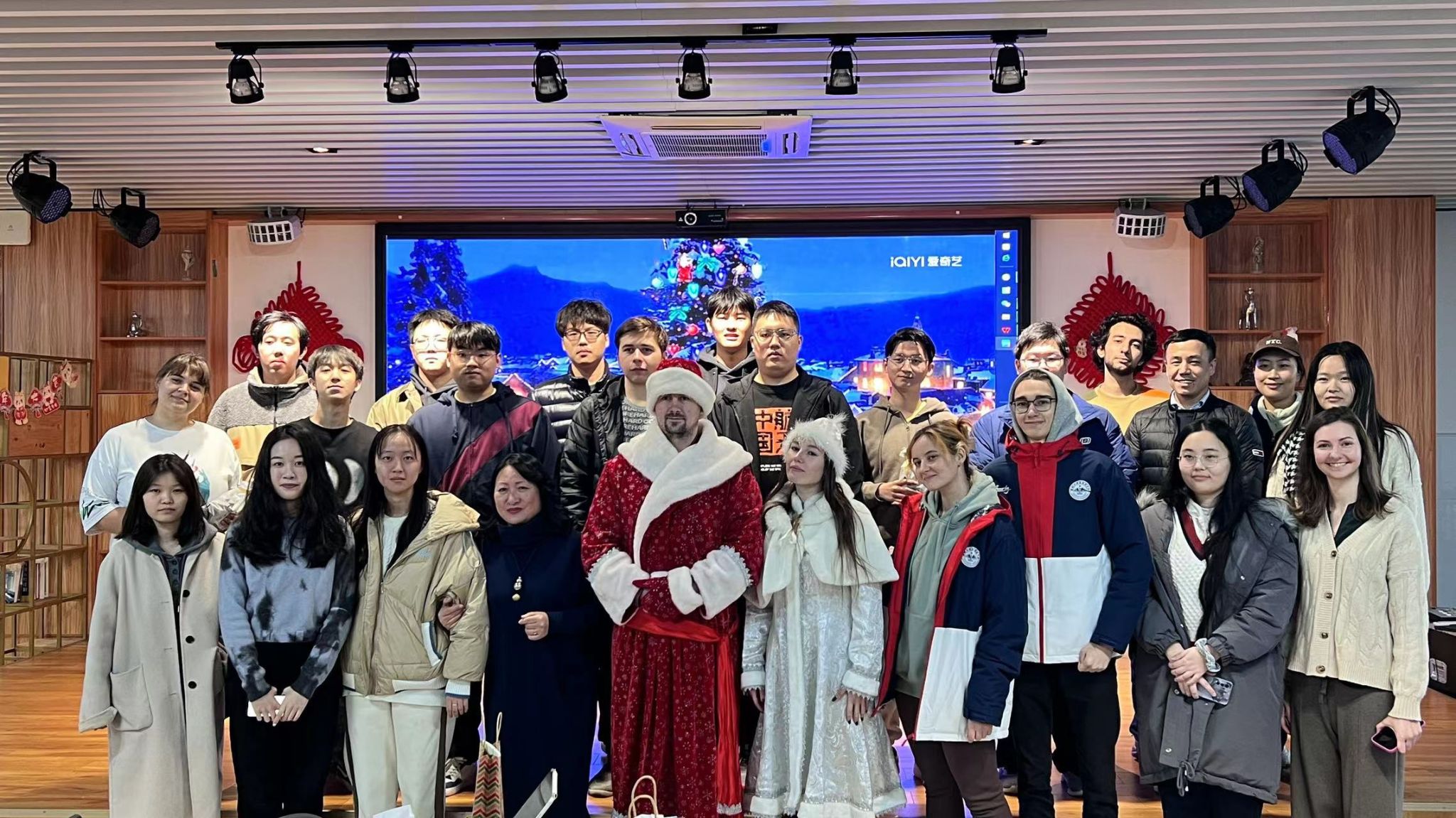 文化对话是聚会不可或缺的一部分。俄罗斯的研究生向中国学生介绍了俄罗斯菜肴的起源和制作方法。中国学生同样分享了中国庆祝新年的传统。美味的晚餐过后,同学们在语言国情知识竞赛和其他比赛中崭露头角。晚会结束时大家感到了意外的惊喜:严寒老人和雪姑娘来到活动现场,给同学们送上了暖心的糖果。