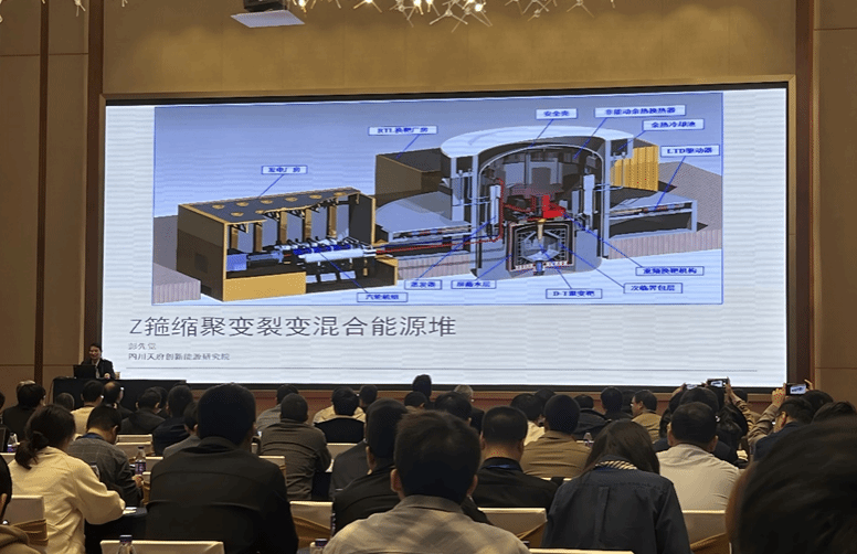 会上,四川天府创新能源研究院的彭先觉院士发表了题为《Z 箍缩聚变裂变混合能源堆》的前沿报告。报告聚焦于 Z 箍缩聚变裂变混合能源堆这一核领域关键技术,全面阐述其发展脉络、核心原理、技术架构及创新突破。从 2001 年中物院启动 Z 箍缩聚变研究起,历经靶研究、混合堆研究等关键节点,至 2008 年正式提出 “Z 箍缩聚变裂变混合能源堆”(Z-FFR)概念,再到如今完成大量理论与部分实验研究,即将迈入工程验证及演示阶段,展现出我国在该领域的不懈探索与卓越成就。其基本原理基于 Z 箍缩驱动聚变单元(中子源)与深次临界裂变包层(能量放大器)协同作用构建百万千瓦电站,各组件紧密配合、各司其职。聚变单元中 LTD 驱动器、聚变爆室与局部体点火靶、重频换靶机构有序运作,局部体点火靶在降低驱动器电流要求、保障工程可行性方面成效显著;深次临界裂变包层于燃料利用、安全保障、余热排出等技术环节创新突出,有力推动了能源堆技术发展。