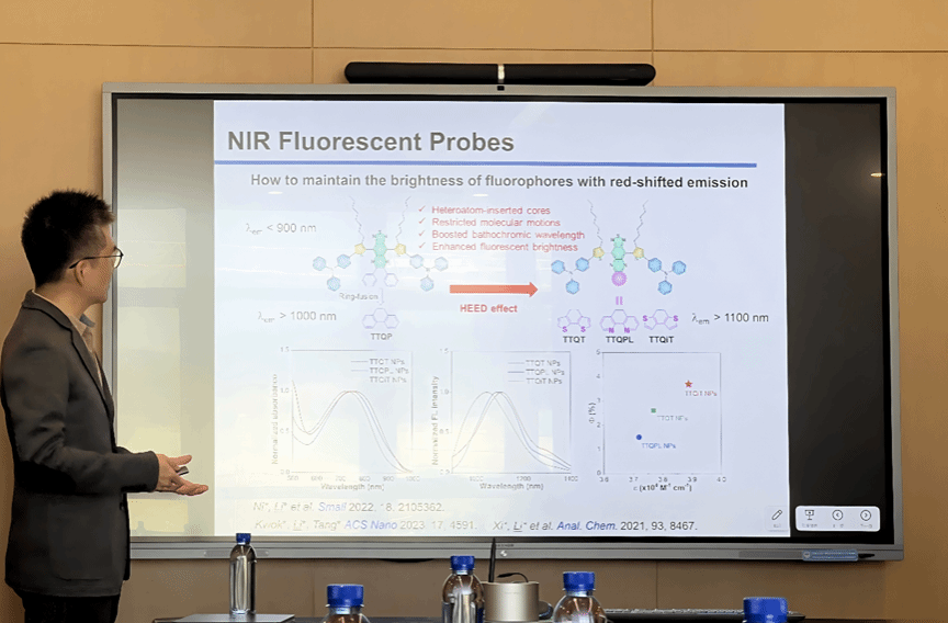 报告伊始,李凯副教授深入阐述了荧光探针在生物医学应用中的核心地位。近年来,其团队研发的一系列创新光学探针,涵盖荧光纳米颗粒、荧光团 - 蛋白质复合物及小分子荧光团等,在长期细胞追踪、细胞器特异性标记及疾病治疗方面展现出巨大潜力,为后续研究奠定了坚实基础。