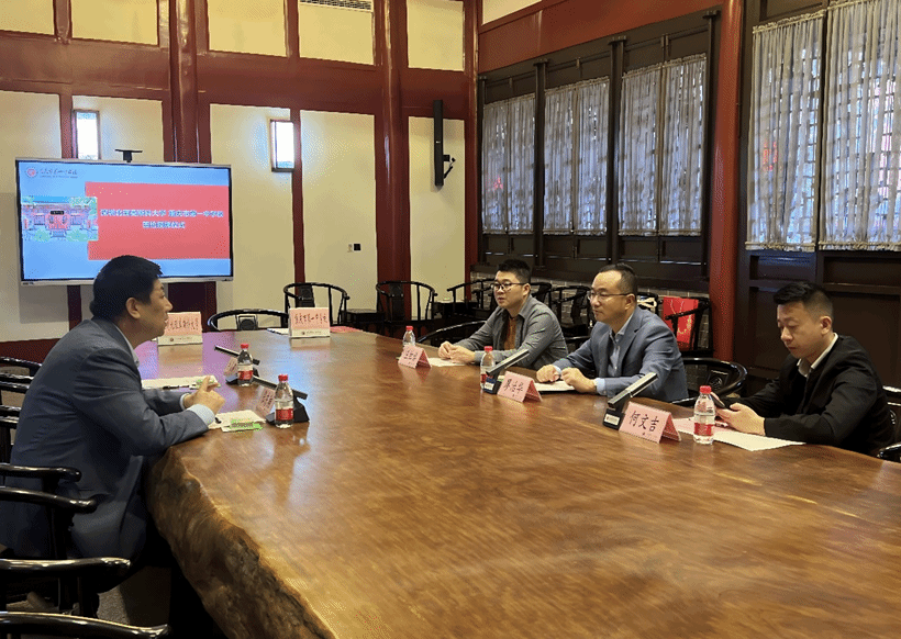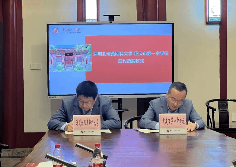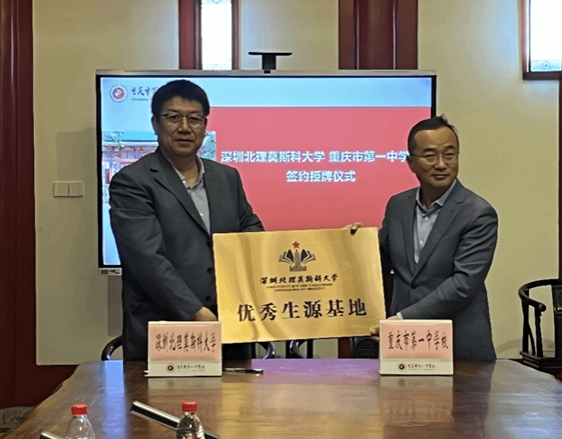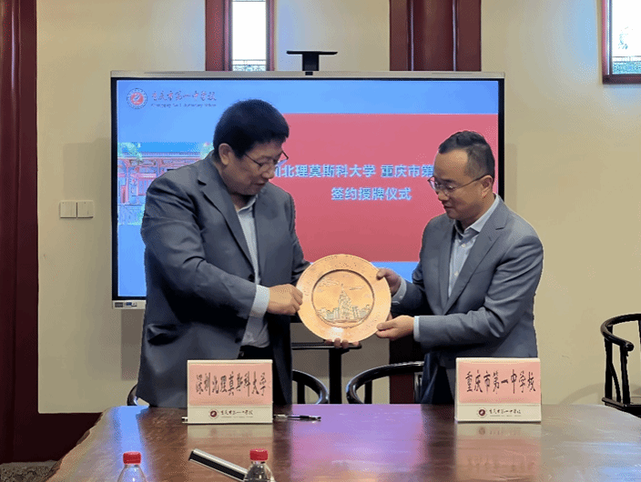 紧接着,招生组前往重庆一中,与重庆一中党委副书记廖治华、副校长何文吉、教务处副主任王红旗进行了积极的交流互动。双方就教育资源共享、学生培养路径等话题交换了意见,重庆一中表达了希望教师能够前往ac米兰参观学习的愿望,同时期待组织学生开展研学活动,张东翔教授也积极回应,表示愿意协助邀请专家到校举办讲座,助力学生拓宽视野、提升能力。张东翔教授与廖治华副书记顺利签订生源基地协议,并向重庆一中授予优秀生源基地牌匾及铜盘,进一步深化了两校之间的合作关系。