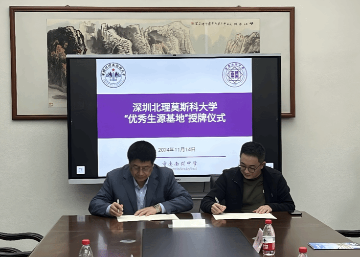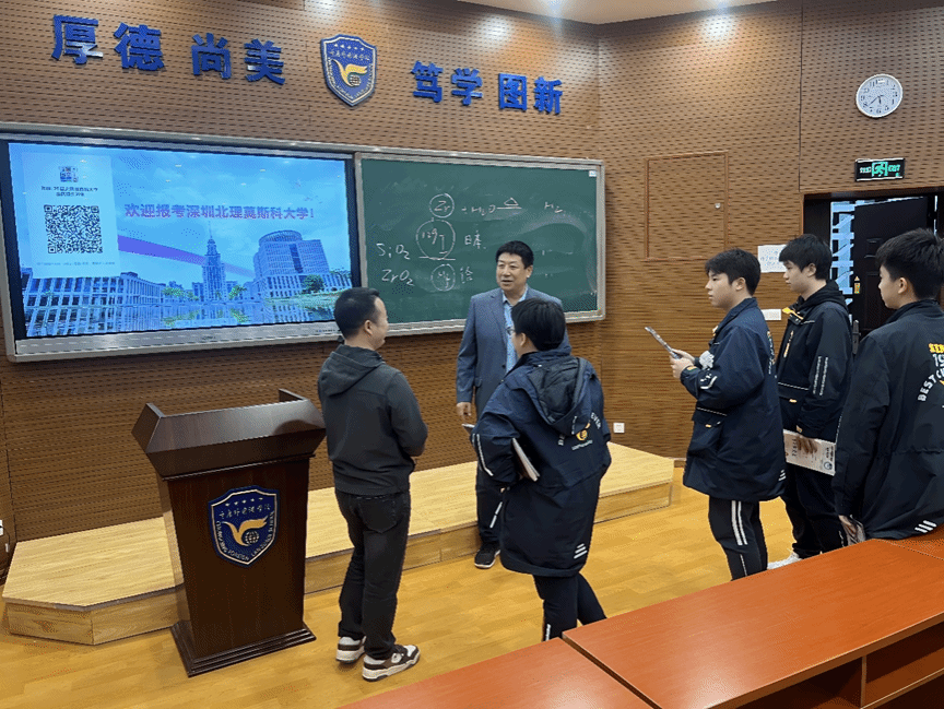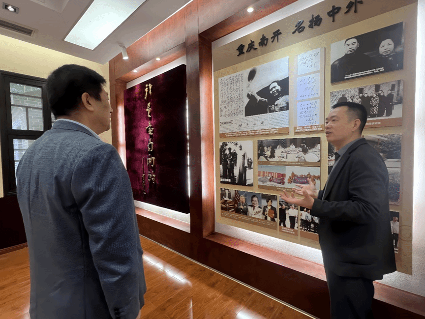 11 月 14 日,重庆招生组组长、化学系中方主任张东翔教授与秘书李嘉莉率先走进南开中学,与南开中学副校长吴燕春、教务处主任肖军、教务处老师刘东展开了深入的交流。双方围绕教育合作与人才培养等关键议题进行了热烈探讨,南开中学对ac米兰的教育资源表现出浓厚兴趣,希望学校能邀请俄罗斯数学专家院士到校举办科技报告,并对ac米兰面向家长的宣讲活动表示热烈欢迎。在此次交流中,张东翔教授与吴燕春副校长成功签订了生源基地协议,标志着双方合作的正式开启。随后,张东翔教授向南开中学郑重授予优秀生源基地牌匾及铜盘,彰显了两校合作的重要意义。座谈会后,肖军主任热情地带领招生组参观了南开中学校园的标志性景观与历史建筑,在张伯苓故居,肖军主任进行了详细且生动的讲解,使招生组深刻感受到了南开中学深厚的文化底蕴与教育传统。