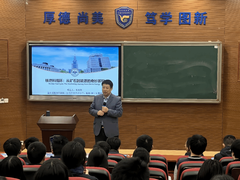 11 月 17 日晚,招生组来到重庆实验外国语学校。张东翔教授带来了一场题为《核燃料循环:从矿石到能源的奇妙旅程》的科普报告,为 60 名学生开启了一场知识的盛宴。在报告中,张教授首先从核能的基本概念入手,深入浅出地讲解了原子内部蕴藏的能量如何转化为电能或其他形式能源,让同学们对核能有了初步的认识。接着,详细阐述了核燃料循环的过程,包括从铀矿的开采开始,介绍了铀矿的种类及分布情况,使同学们了解到铀矿资源的来之不易。随后,讲解了如何通过复杂的化学冶炼等过程从铀矿中提取铀,并将其转化为可用于核电站的燃料组件,其中涉及到的化学和物理变化让同学们感受到了科学的奇妙。在讲解乏燃料处理环节时,张教授强调了其重要性和复杂性,以及目前国际上在这方面所面临的挑战和采取的应对措施,引发了同学们对核能源可持续发展的深入思考。整个报告过程中,张教授运用生动的案例和形象的比喻,将复杂的核燃料循环知识讲解得通俗易懂。同学们被深深吸引,积极提问,问题涵盖了核辐射安全、新型核燃料研发、核能在未来能源格局中的地位等多个方面,张教授一一耐心解答,现场气氛热烈非凡。在接下来的宣讲会上,张教授详细介绍了学校的发展历程、学科专业设置、师资队伍建设、人才培养模式以及国际交流合作等方面的情况,深入浅出地阐述了学校的教育理念与优势,激发了学生们对ac米兰的浓厚兴趣与向往。宣讲会结束后,张东翔教授与学校党委书记肖艳进行了深入交流,并成功签订生源基地协议,授予优秀生源基地牌匾,为两校未来的合作奠定了坚实基础。