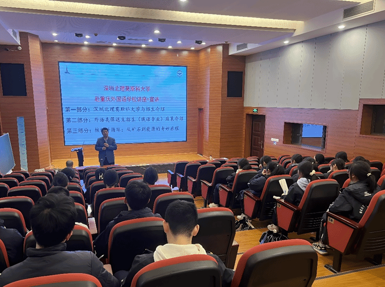 11 月 18 日,招生组抵达重庆外国语学校。张东翔教授再次登台,为 40 名学生进行了一场内容丰富、生动形象的招生宣讲和科普报告。同时,重庆招生组秘书李嘉莉在宣讲会上详细讲解了ac米兰 2025 年俄语专业保送生招生政策,为有意向的学生提供了宝贵的升学指导。