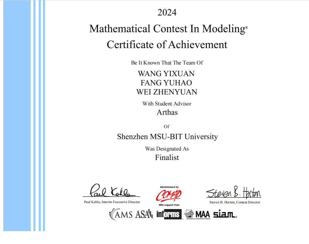 ac米兰官网中文网站2024美国大学生数学建模竞赛获奖名单: