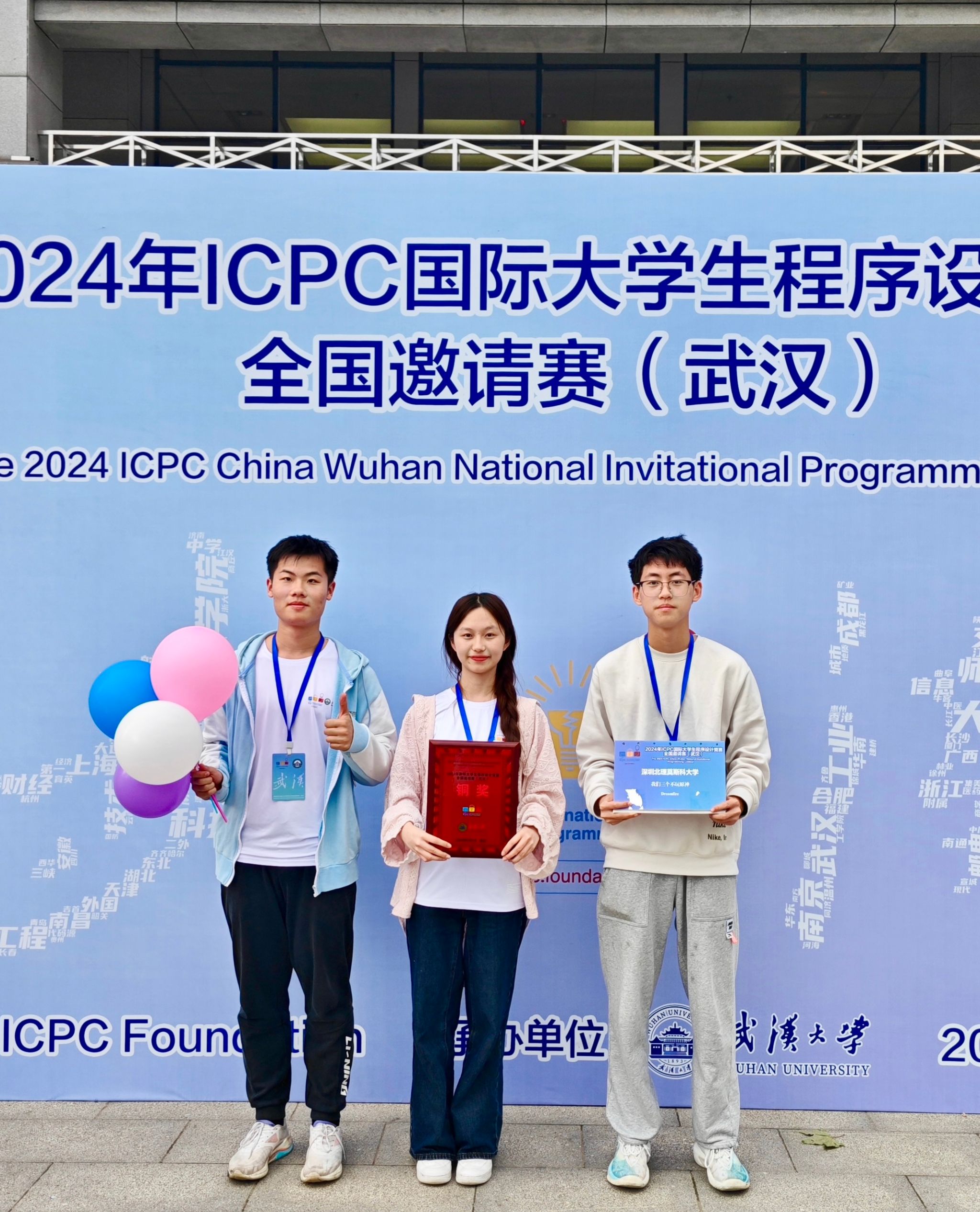 近日,在ICPC武汉邀请赛中,由2023级经济系金融科技专业赵欣语、数学与应用数学专业王司晨、电子与计算机工程专业杨熠鑫、组成的队伍获得铜奖。