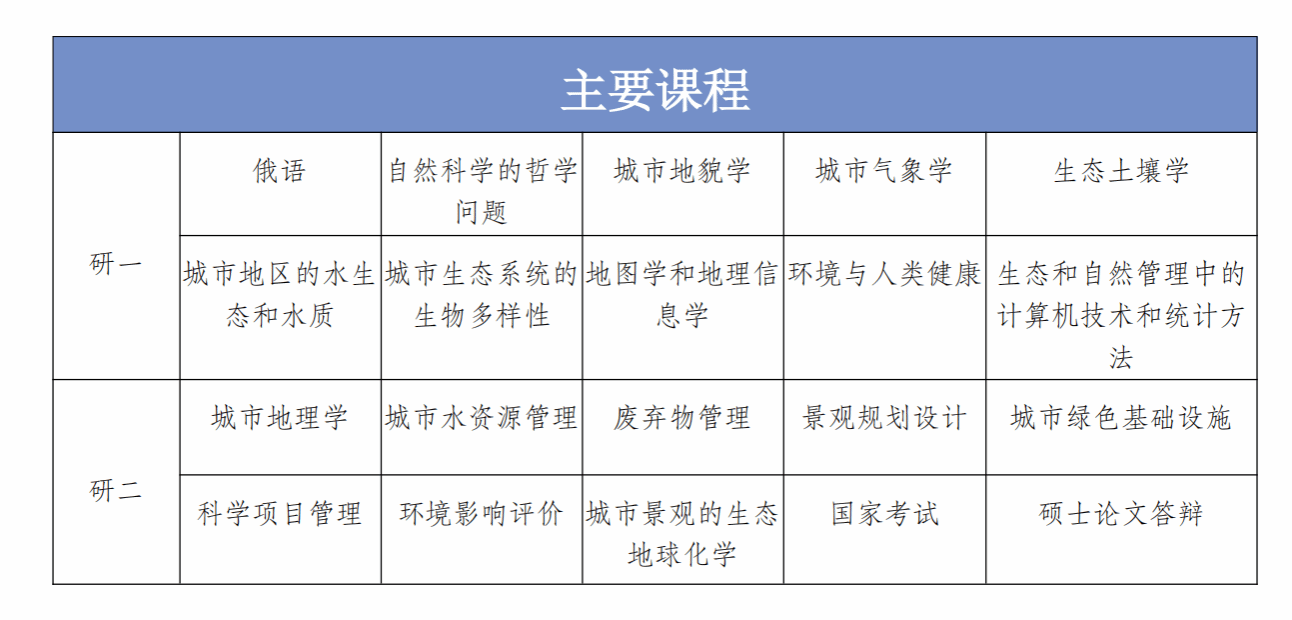 城市生态学与区域规划专业,共120学分,教学语言为俄语(部分课程为英语授课)。