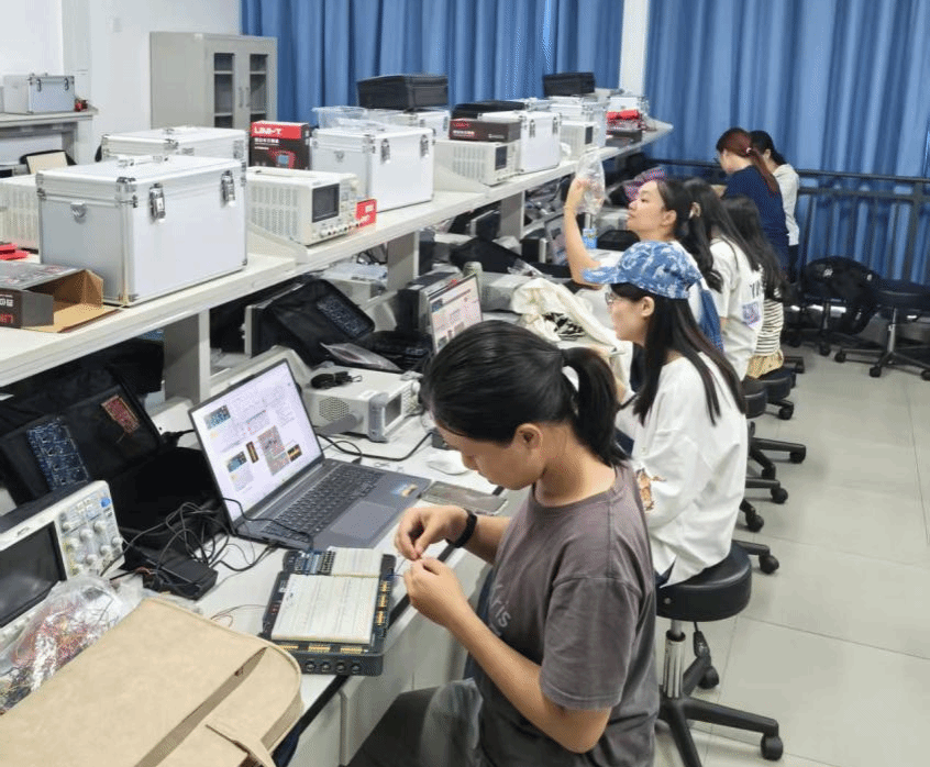 电工电子技术教学实验室设于2号实验楼2层(2间),面积约130㎡,配备30个实验位置/间,实验室采用虚拟仿真与物理设备相结合的方式,支撑电路与模拟电子学、模拟电路、数字电路、嵌入式系统等电工电子类课程的教学实验与科技创新活动的开展。