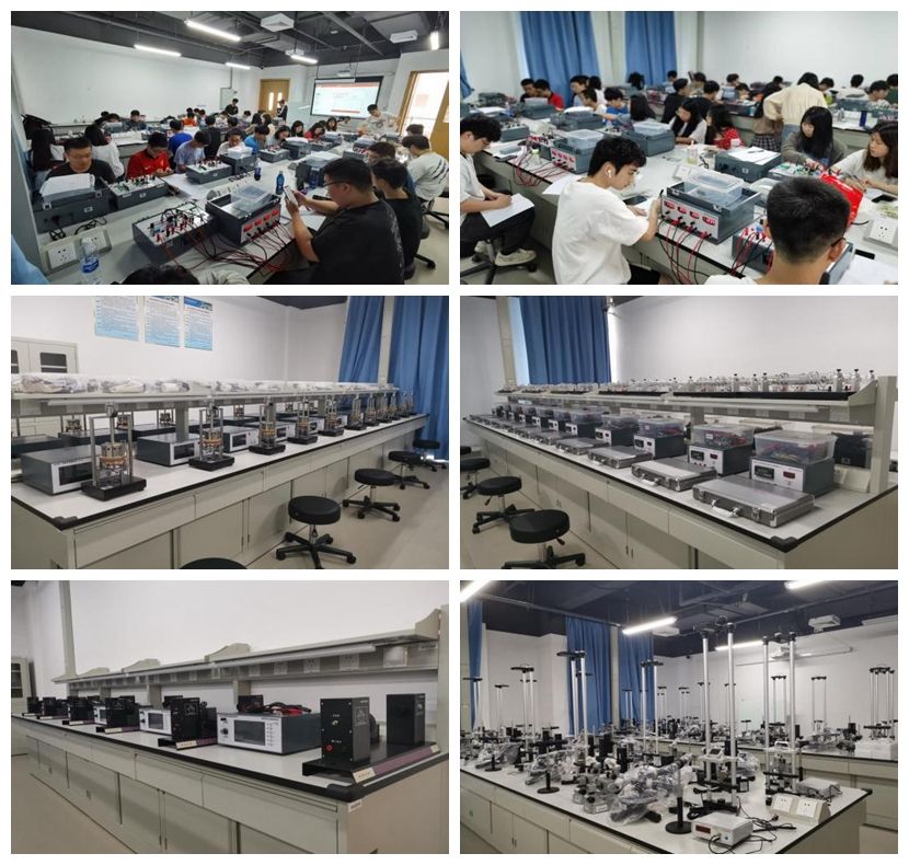 大学物理教学实验室设于2号实验楼2层(9间),共计面积728㎡,配备44个实验位置/间。涵盖热学、电磁学、力学、电学、声学、光学、近代物理及综合创新实验室。教室均配备投影、白板。考场监控系统等智能教学设备。