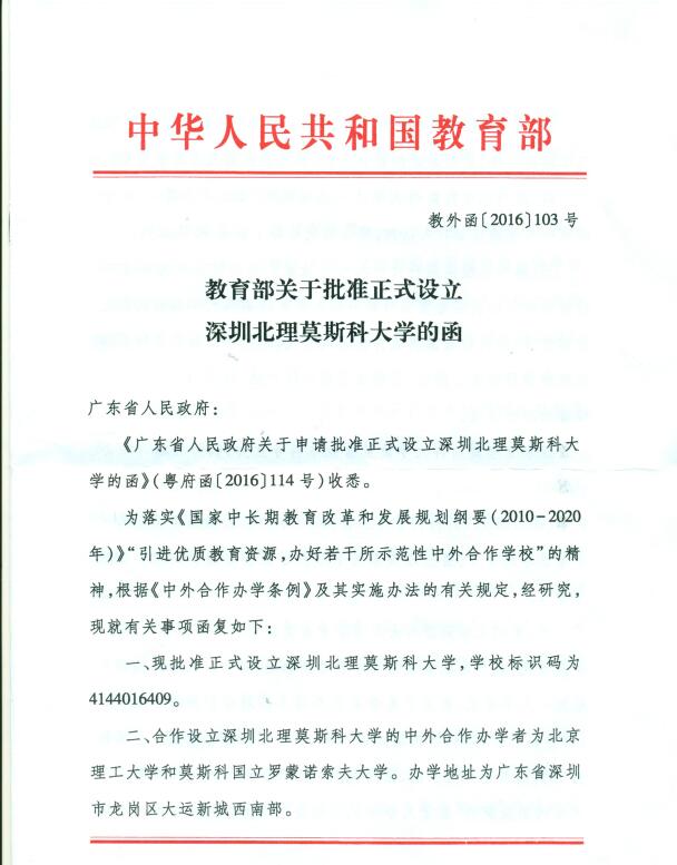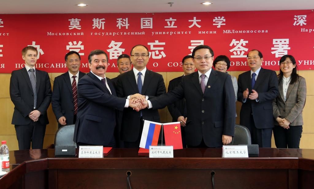 在中俄两国元首习近平主席和普京总统见证下,中俄两国教育主管部门签订谅解备忘录,支持莫斯科大学与北京理工大学在深圳合作举办大学。