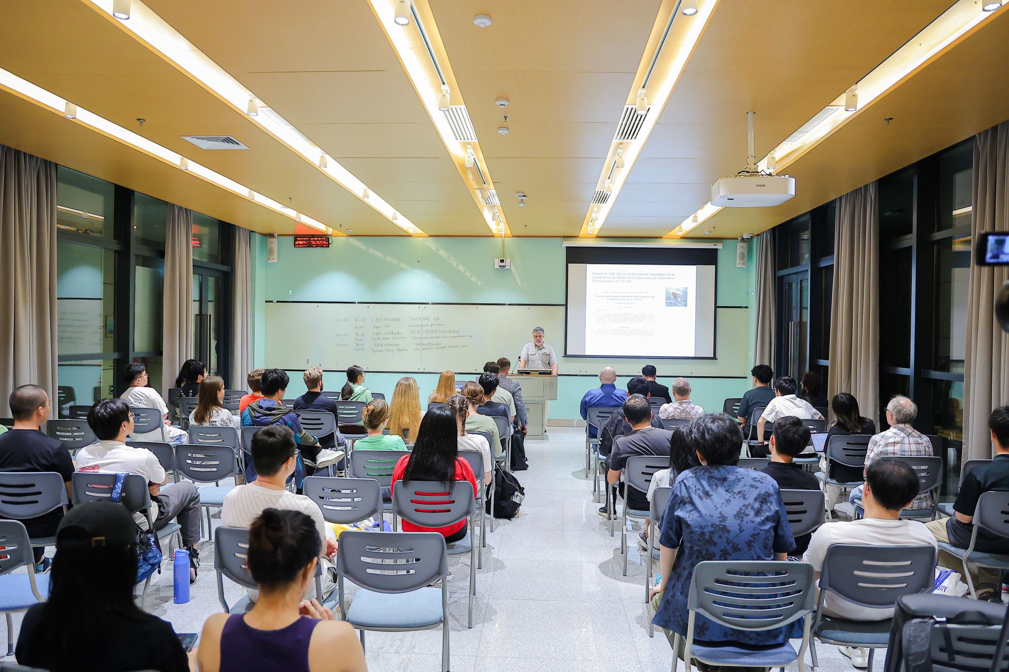 关于地球,小生灵们也有许多秘密。在ac米兰3教105教室里,俄罗斯科学院通讯院士、俄罗斯科学院动物研究所所长尼基塔·切尔涅佐夫,以《动物如何感受磁场》为题展开讲座,以鸟类为例,分析动物感知磁场的方法,现场坐满了对生物学、物理学感兴趣的听众。