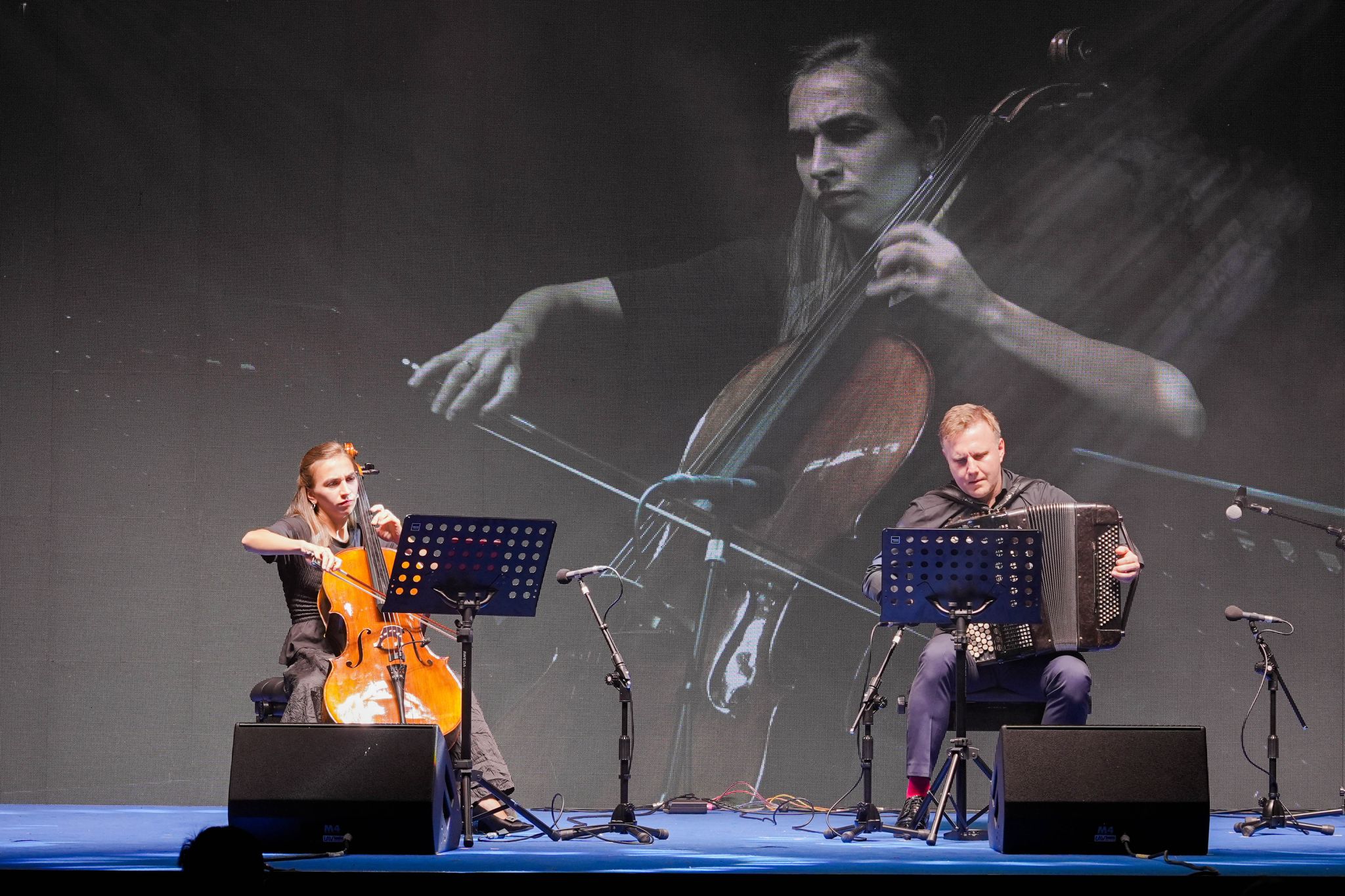 深圳市民王女士专门带着孩子来到演出现场聆听,“我提前知道了今晚有音乐演出,就专门带孩子过来,想让她多感受这种艺术的氛围。”安娜·科什金娜的大提琴演奏和尼古拉·西夫丘克的巴扬演奏迷人动听,给这个夜晚增添了一抹浪漫色彩。