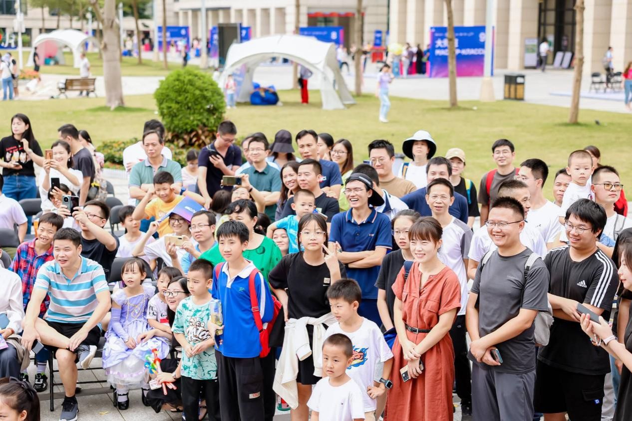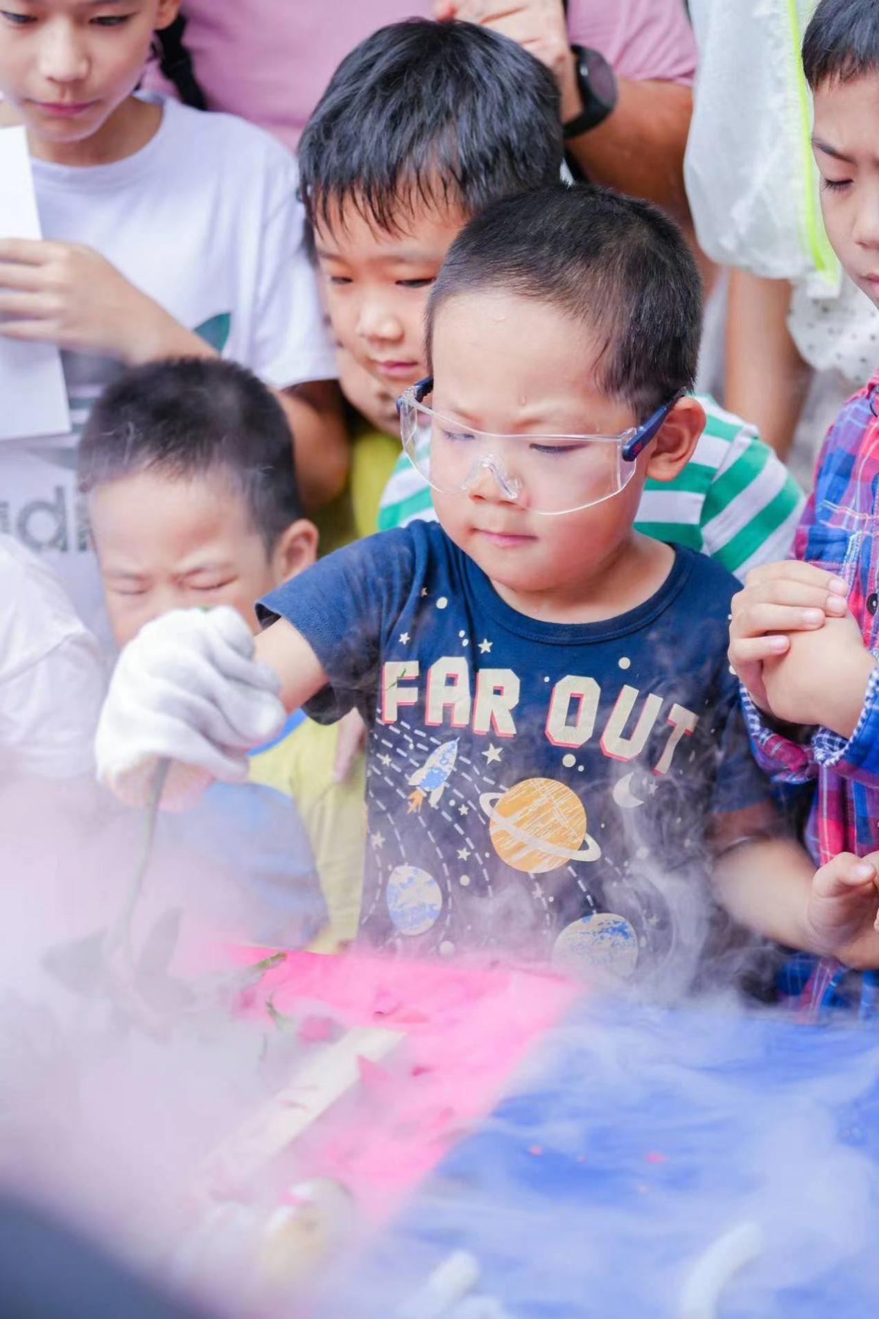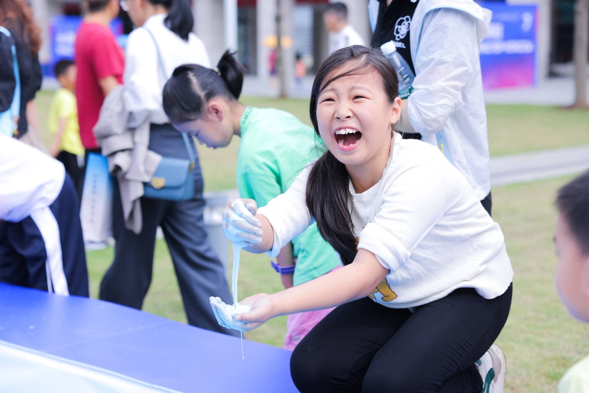 “三、二、一!砰!”随着现场观众的倒数,站在湖畔舞台上的导师,用水枪把水射向混合了镁粉和硝酸银的粉堆,一团火焰喷涌而出,引得观众们惊叫不止。直至这场科学秀结束,大家都还在回味那团猝不及防的火和数不清的精彩瞬间。“亲眼看了之后,更加觉得理科果然很有趣!”来自坪山的高二理科生戚同学坐在舞台前被这场科学秀实验深深吸引,他希望可以在这次活动中,体验不同学科的魅力,找到未来更感兴趣的学习方向。科学秀散场后,汤女士领着一群小朋友在舞台旁合影留念,“孩子们都是一个班的同学,我们十几个家庭约好一起来参加这个活动。”汤女士笑称自己是这十几个孩子的“领队”,她希望孩子们可以和自己的朋友一起动手,感受科学的魅力。