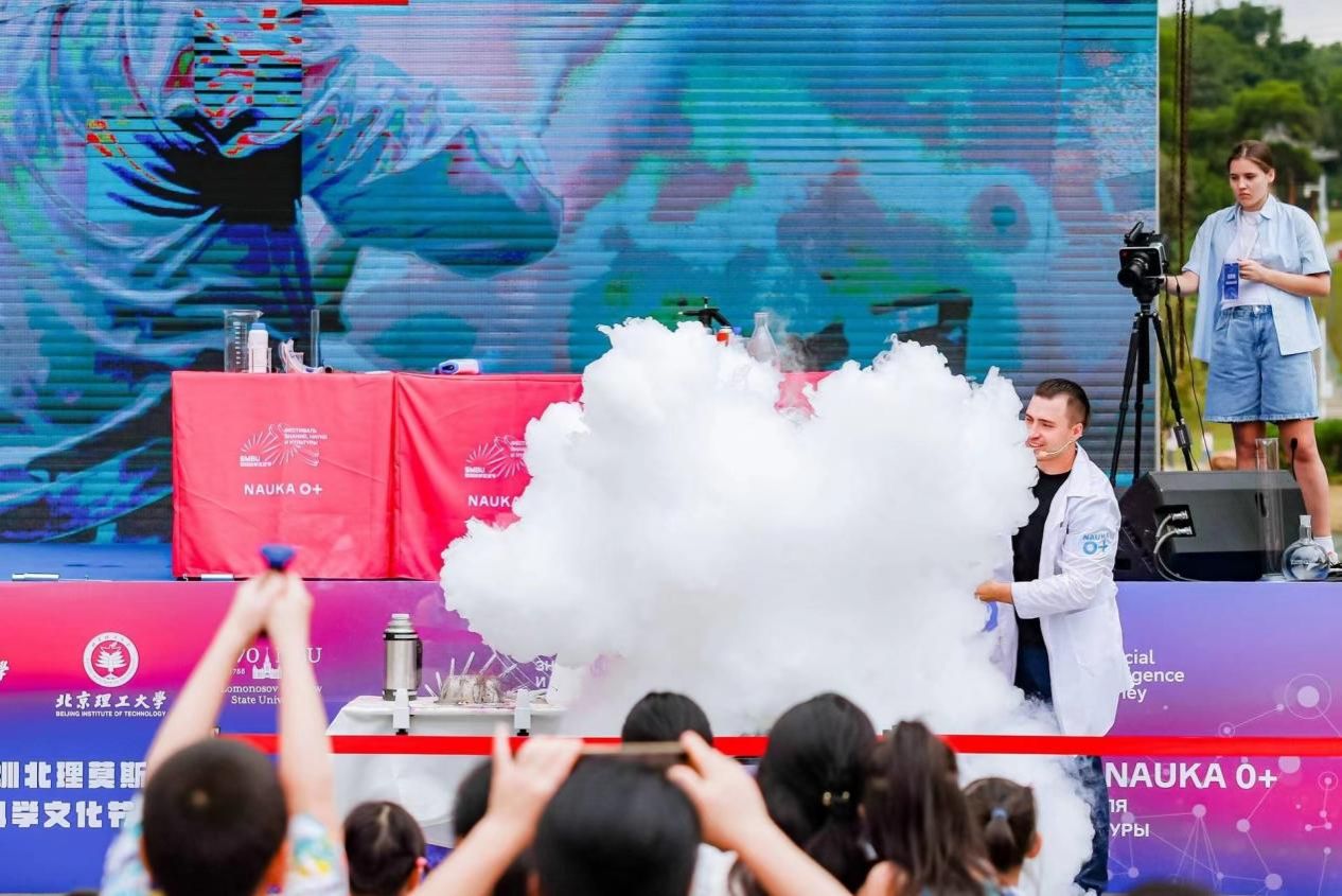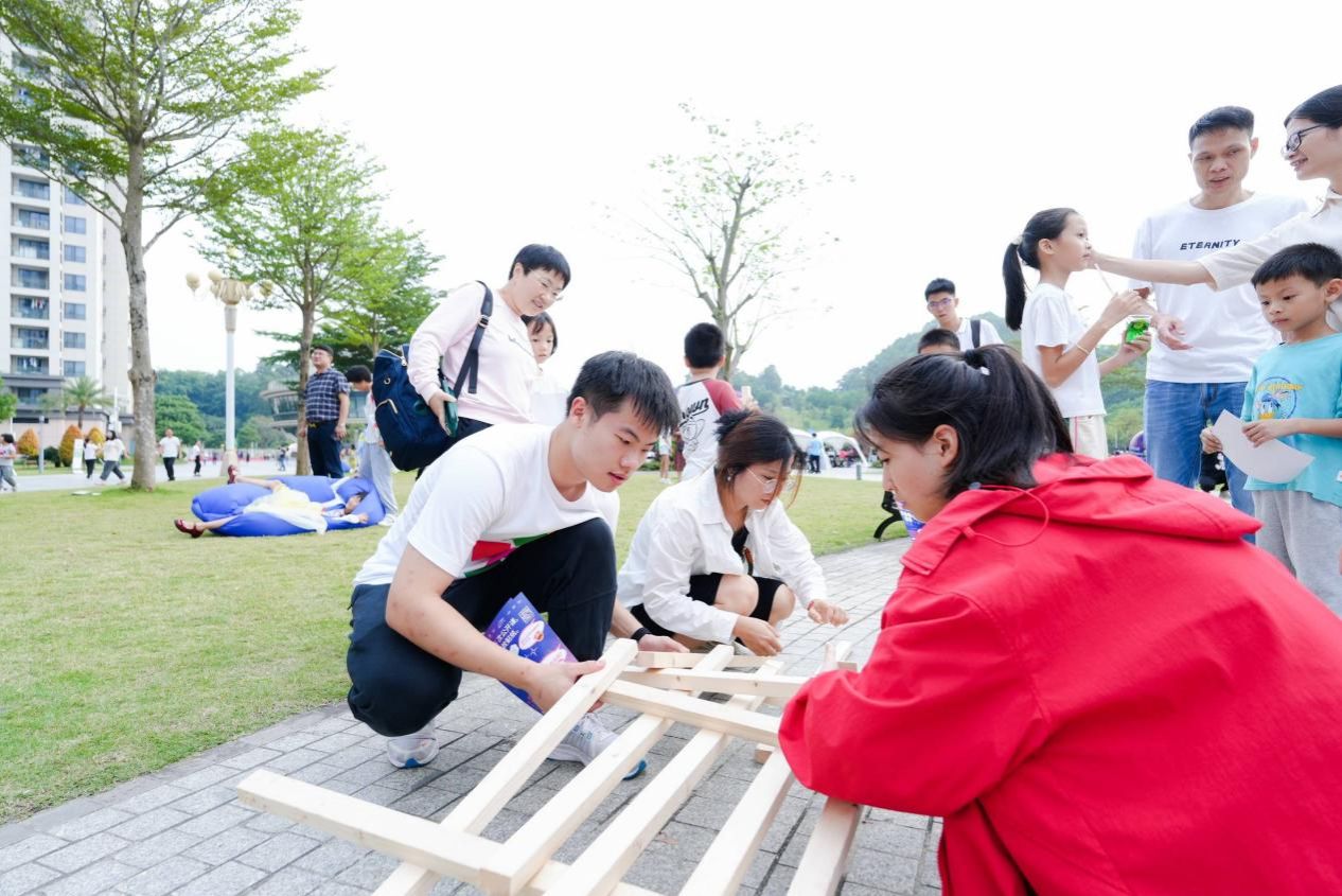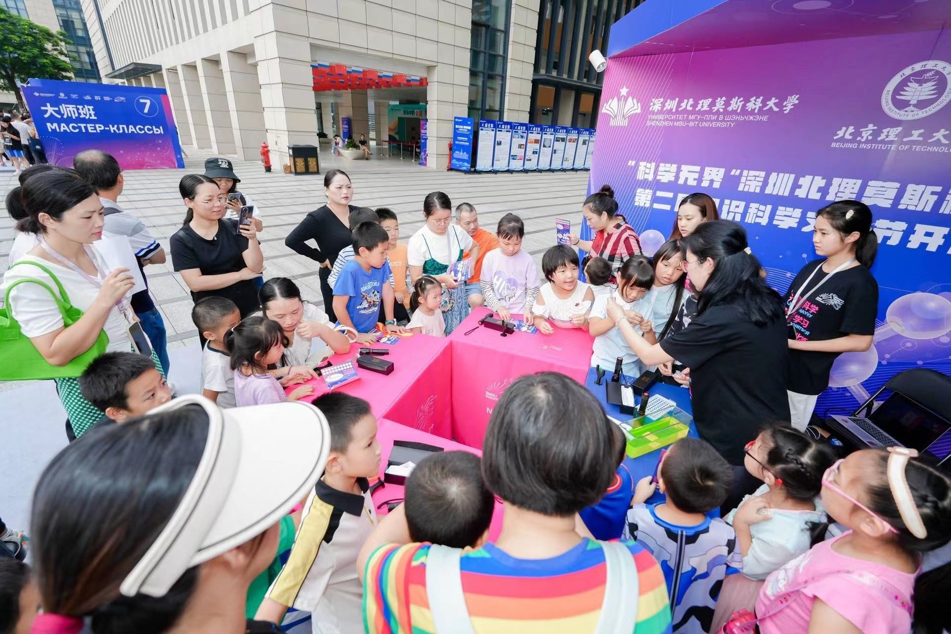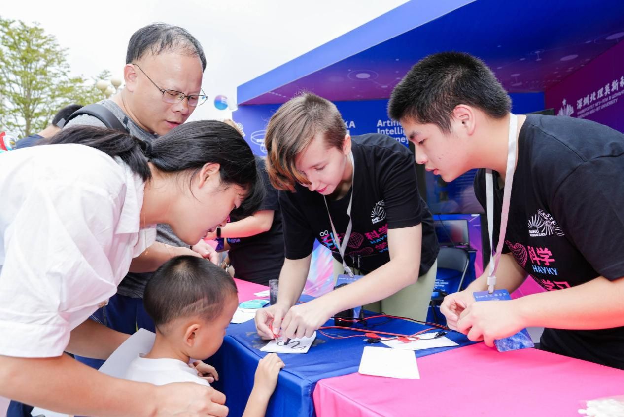 “三、二、一!砰!”随着现场观众的倒数,站在湖畔舞台上的导师,用水枪把水射向混合了镁粉和硝酸银的粉堆,一团火焰喷涌而出,引得观众们惊叫不止。直至这场科学秀结束,大家都还在回味那团猝不及防的火和数不清的精彩瞬间。“亲眼看了之后,更加觉得理科果然很有趣!”来自坪山的高二理科生戚同学坐在舞台前被这场科学秀实验深深吸引,他希望可以在这次活动中,体验不同学科的魅力,找到未来更感兴趣的学习方向。科学秀散场后,汤女士领着一群小朋友在舞台旁合影留念,“孩子们都是一个班的同学,我们十几个家庭约好一起来参加这个活动。”汤女士笑称自己是这十几个孩子的“领队”,她希望孩子们可以和自己的朋友一起动手,感受科学的魅力。