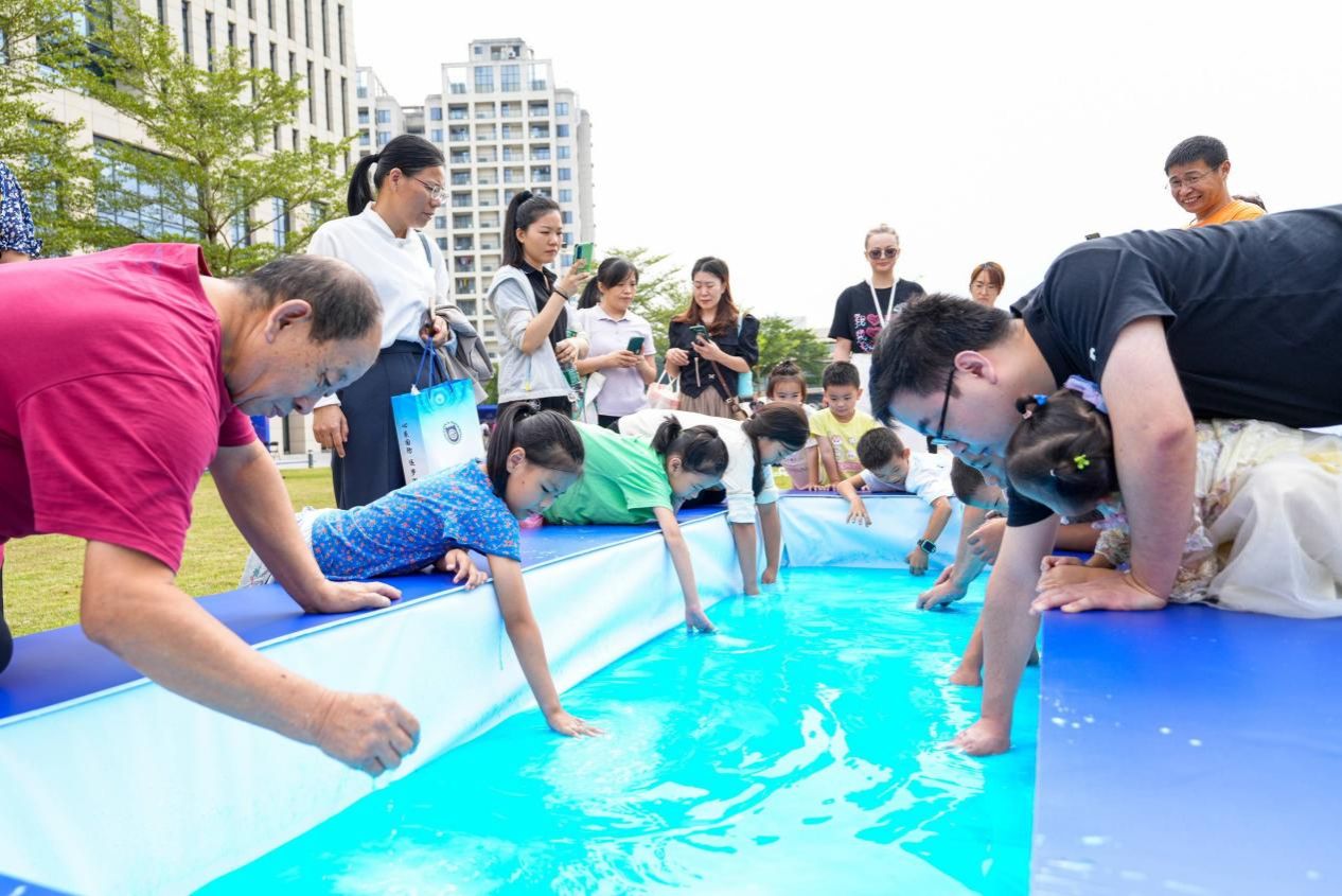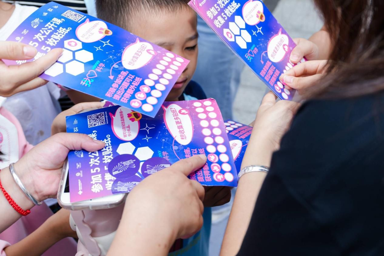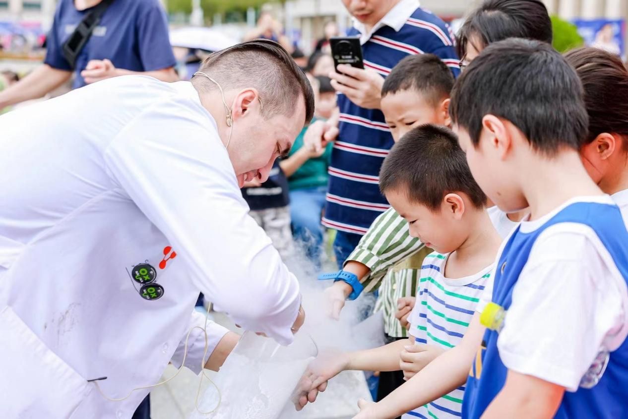 中心广场的互动区,放着一个装着天蓝色浓稠液体的容器,好奇的市民们里里外外地将这里围了个水泄不通。“这是什么?好软!不对,好硬!”在志愿者的指引下,大人和小朋友们纷纷将手放进液体中一探究竟。“这是非牛顿流体,你越用力地碰,它就越硬哦。”志愿者向体验者详细解释了这一物质的特点。一位小朋友因为太急着把手抽出来,反倒被紧紧吸住,最后还是在外婆的鼓励下,慢慢放松,才顺利把手从液体里抽了出来。“孩子的妈妈是物理老师,所以想趁着这样的活动,把孩子带来感受一下科学的氛围。”小朋友的外婆李女士向记者分享了他们在这次开放周参与的活动。