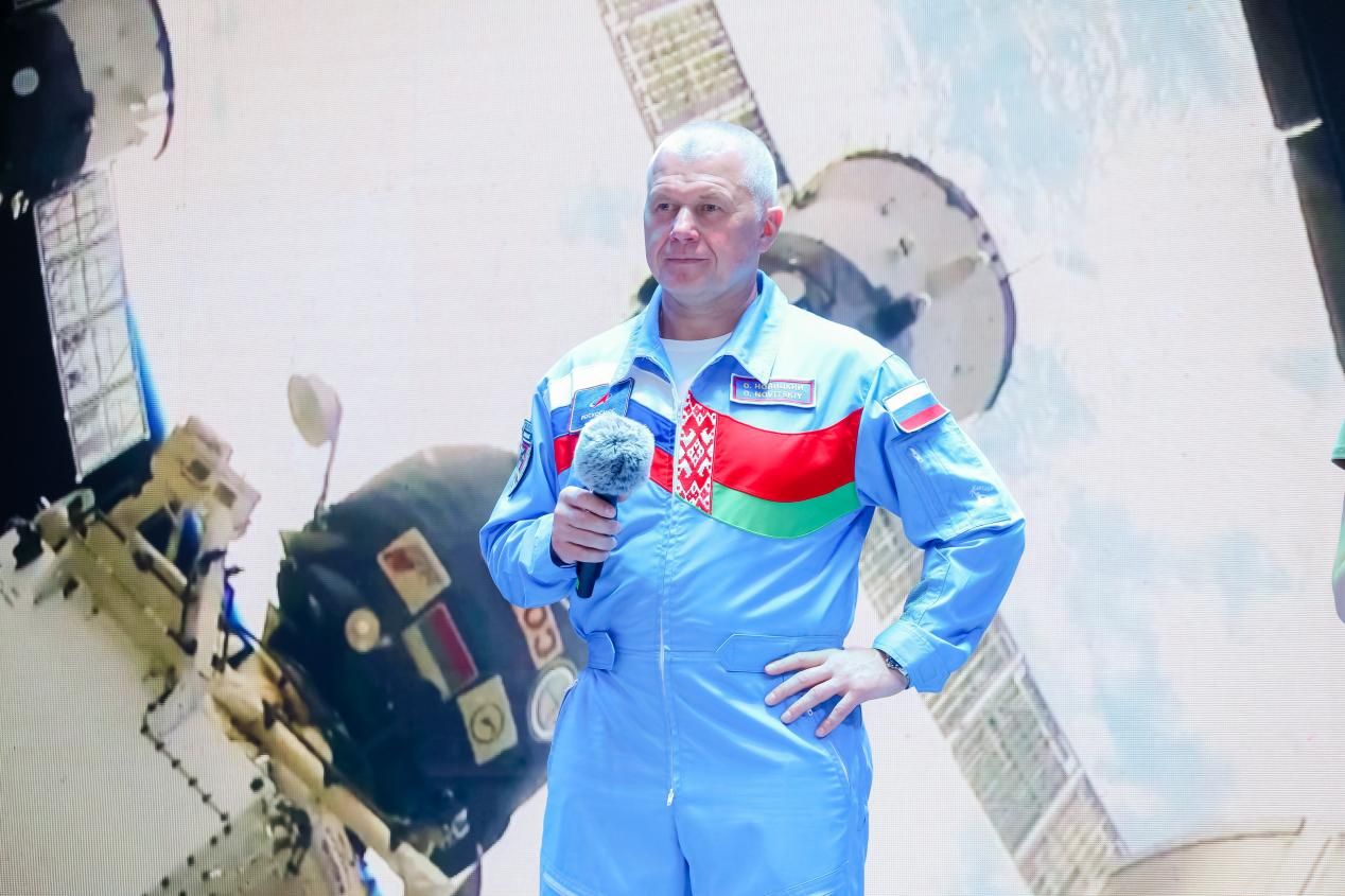 10月26日傍晚,当俄罗斯宇航员奥列格·诺维茨基身着一身蓝色航天服出现在湖滨舞台并用中文向观众打招呼时,现场响起了热烈的掌声与欢呼声。