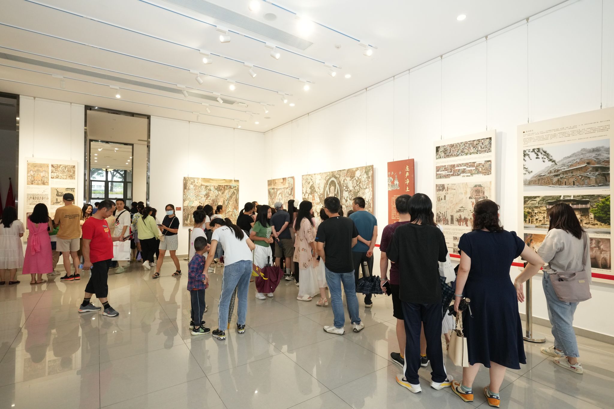 此次《觉色敦煌——敦煌石窟艺术展》精心挑选敦煌石窟经典内容,由丝路漫行、庄严佛宫、匠心营造、霓裳美仪、净土梵音、莫高精神、中俄合作七个单元组成,共展出敦煌石窟经典高保真数字化壁画复制品50余幅。