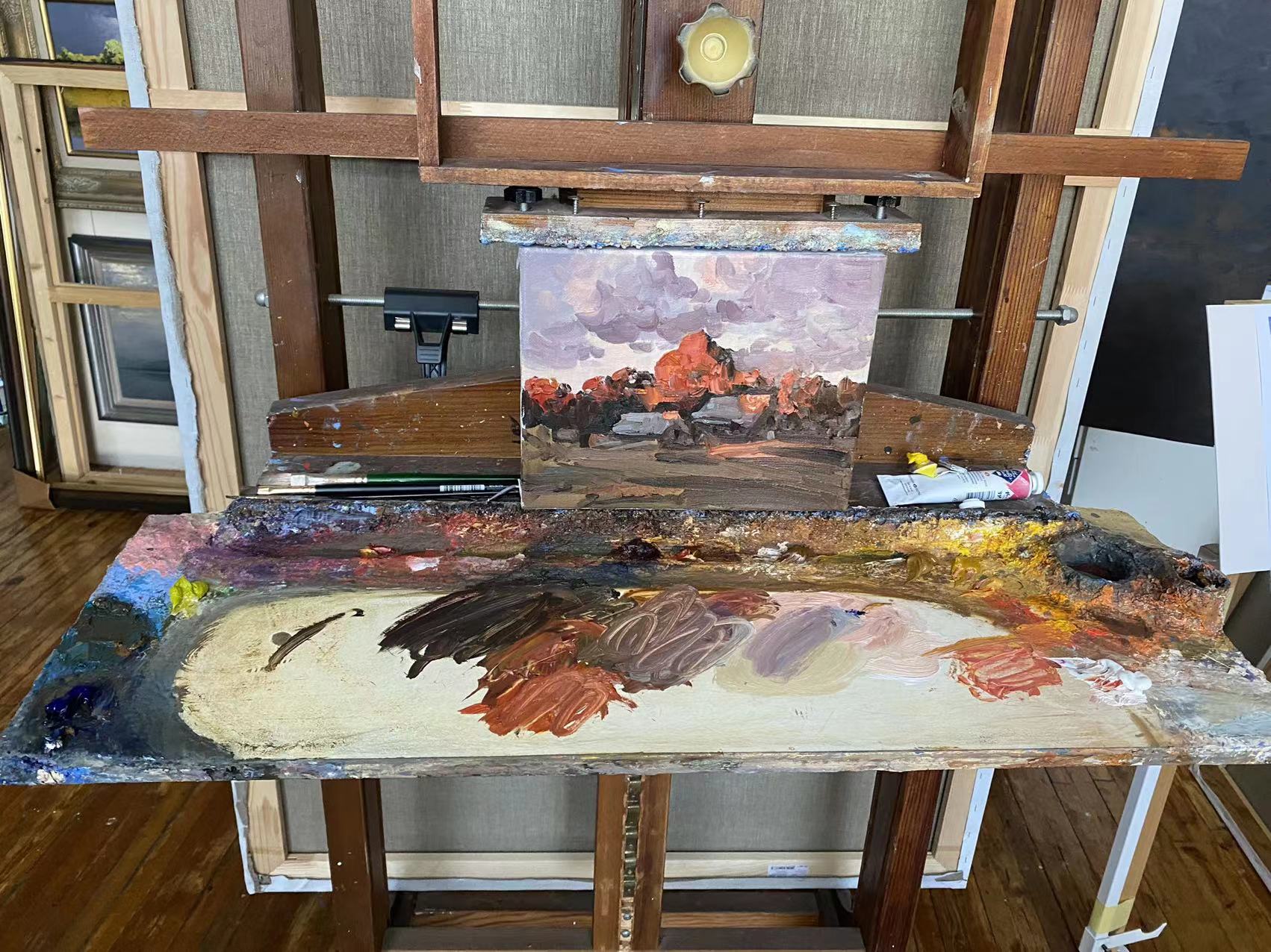 讲座中,亚历山大·鲍里索维奇讲述了俄罗斯风景画的历史和自己在列宾美院的求学经历,向观众展示了自己的工作室和绘画作品,并通过20分钟的现场绘画展示了高超的艺术技巧。